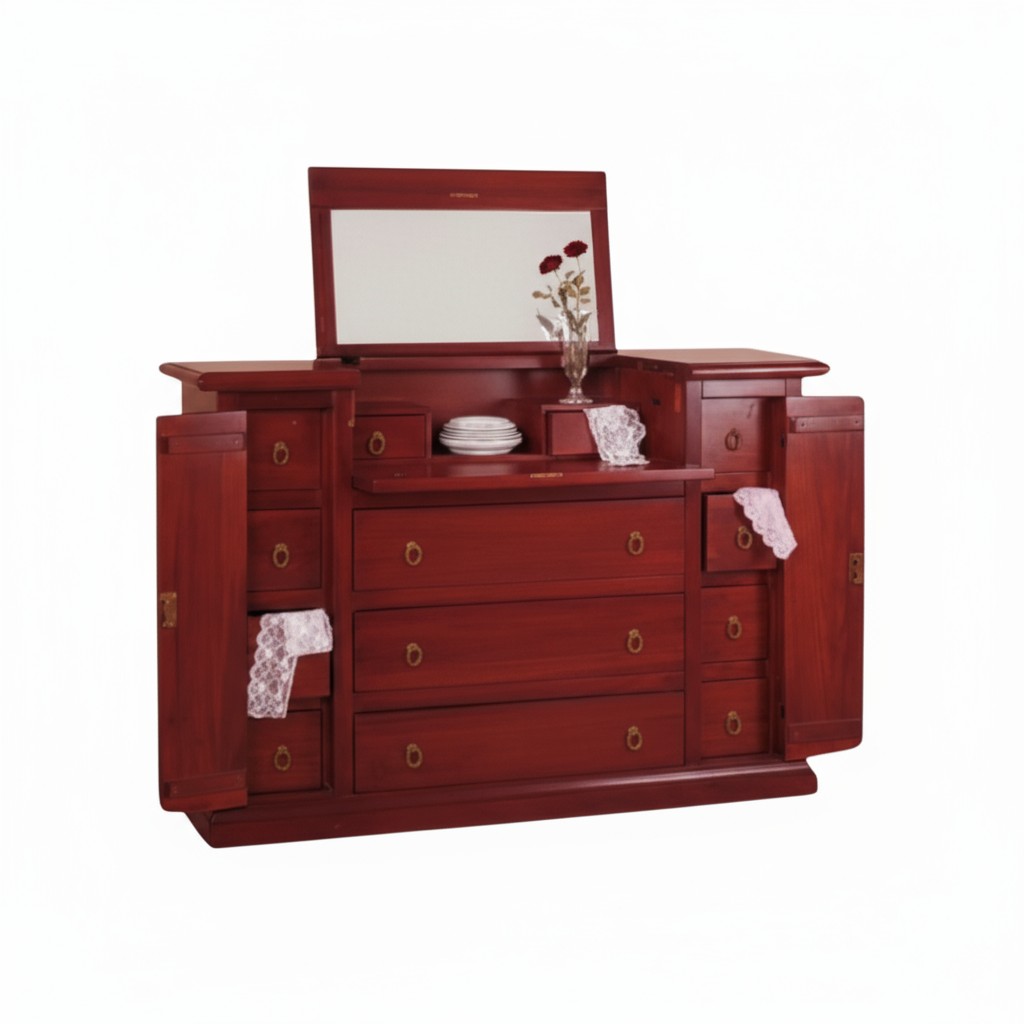 Cassettiera arte povera 13 cassetti con ribalta legno ciliegio 144x54x95 (74)