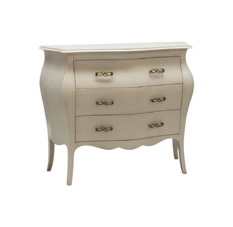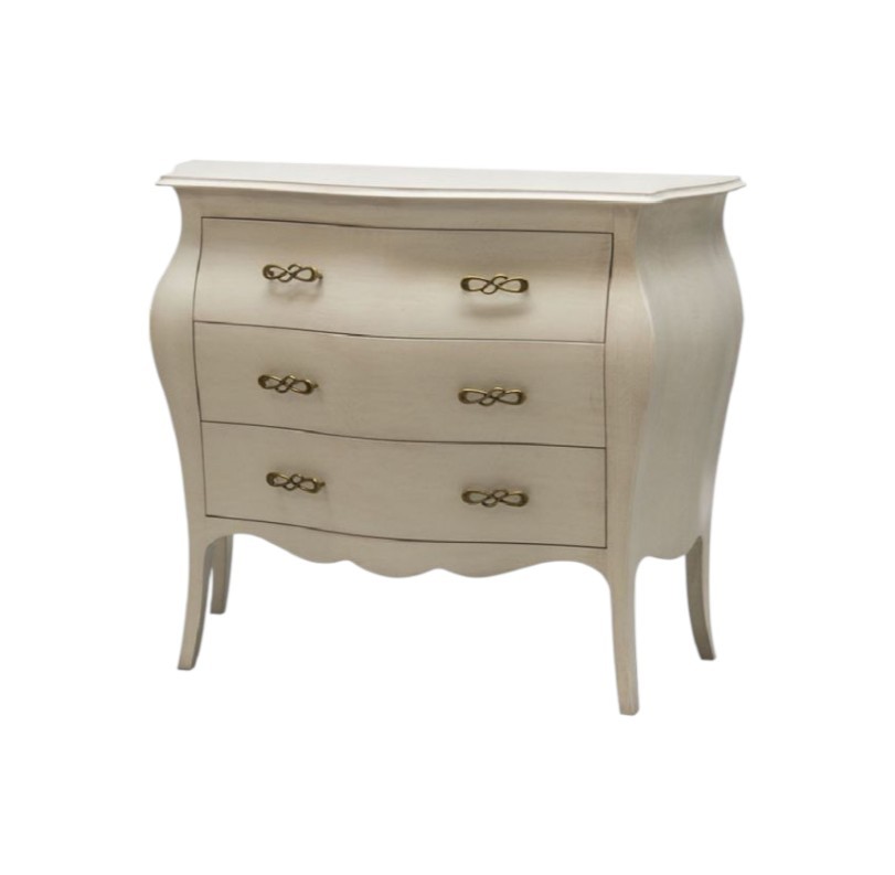 Cassettiera sagomata 3 cassetti legno shabby avorio anticato 105x42X85