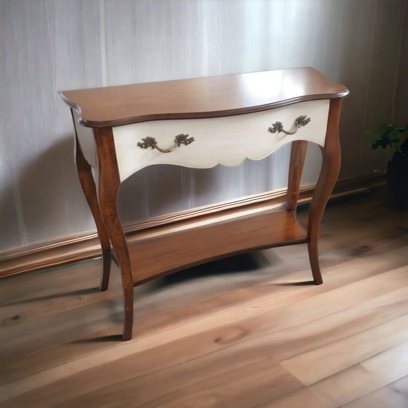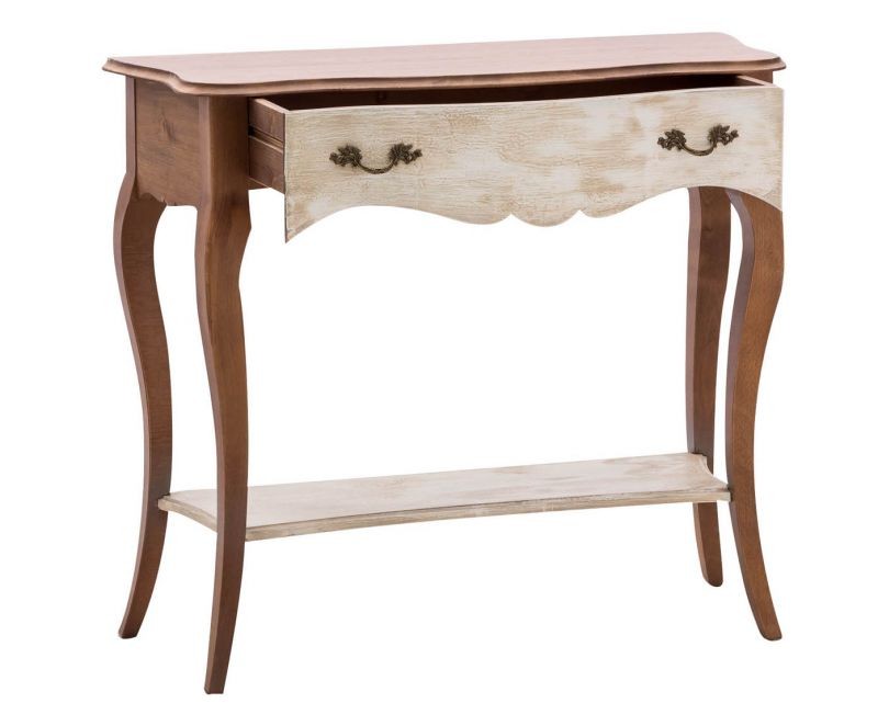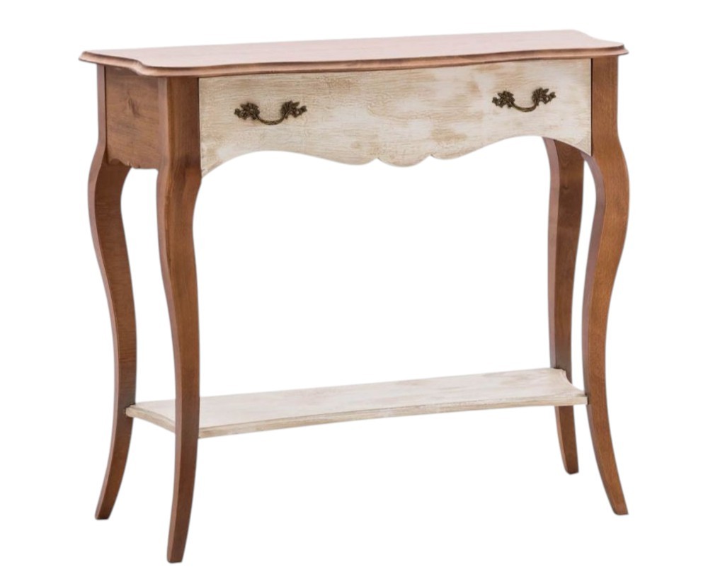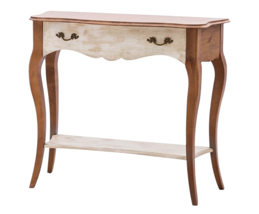 Consolle 1 cassetto legno shabby bianco antico noce bassano 100X40x87