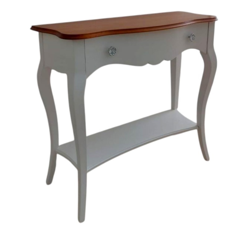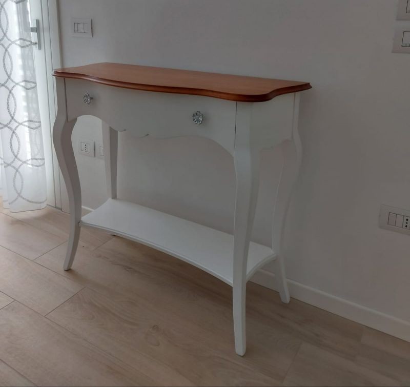 Consolle 1 cassetto legno shabby bianco opaco ciliegio 100X40x87