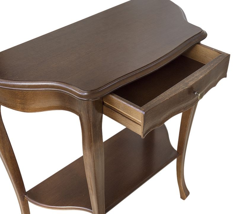 CONSOLLE IN LEGNO 1 CASSETTO TINTA NOCE CON INTARSIO L.81 P.34 H.80 (3110)360,50 € 515,00 € -30% -