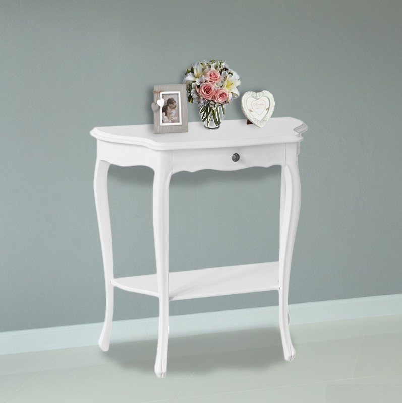 Consolle 1 cassetto shabby legno bianco opaco 75X35x75