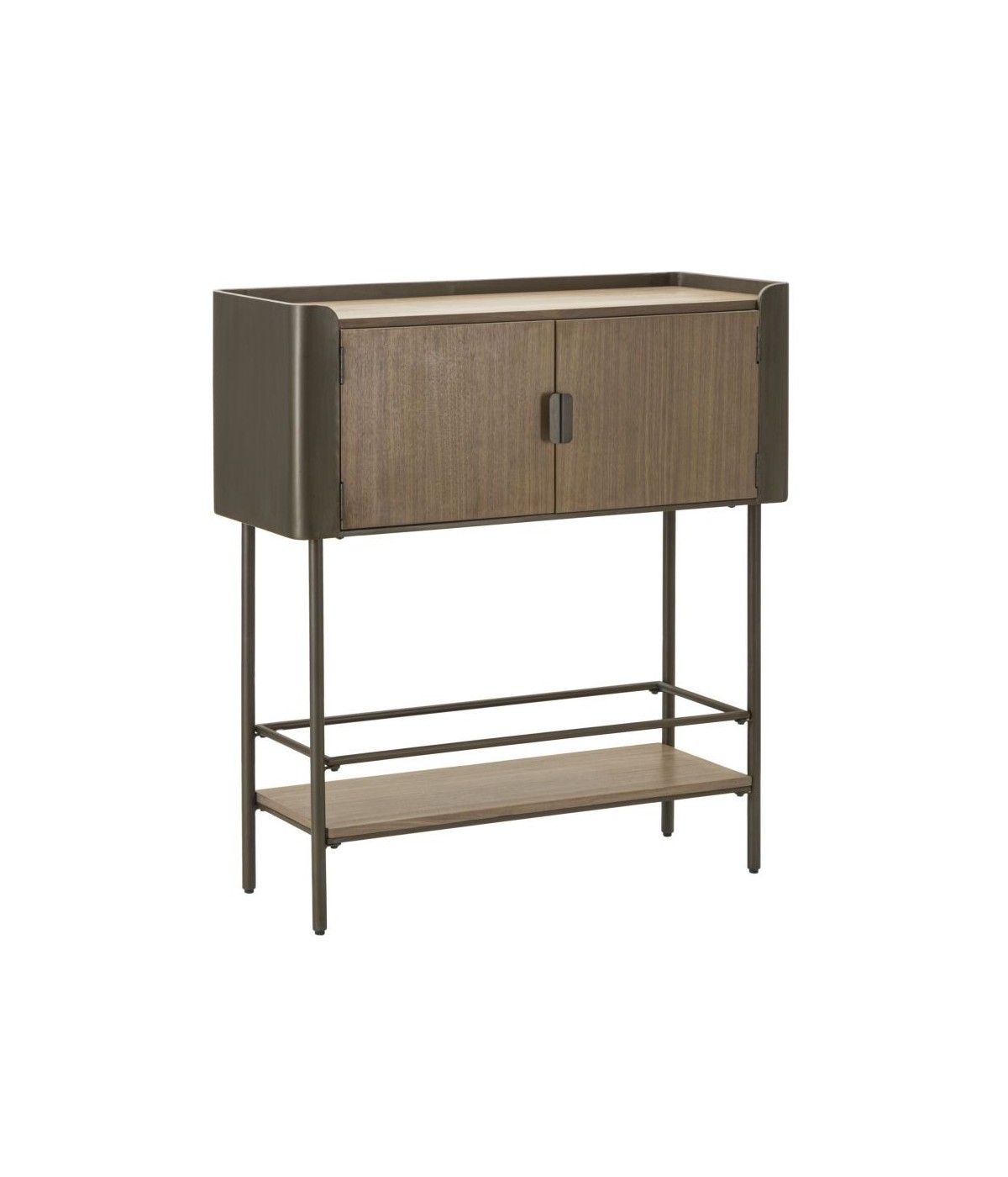 Mobiletto in metallo e legno con 3 ante e ripiano. Il particolare design dalle linee semplici ma accattivanti rende l'articolo perfetto per ogni tipologia di arredo. Prodotto da assemblare.