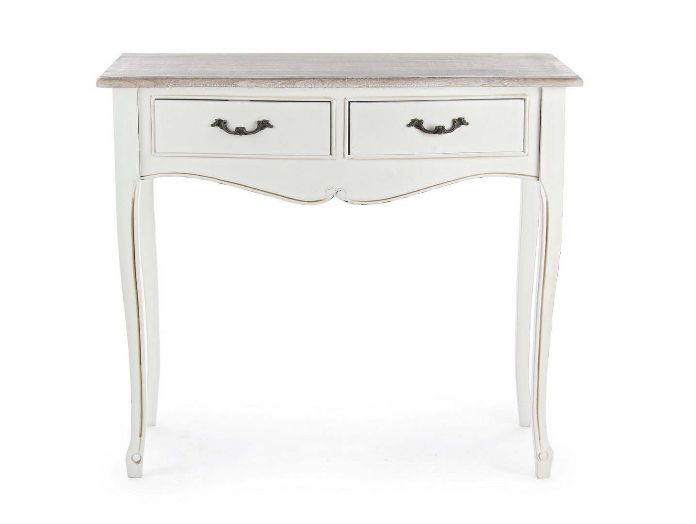 CONSOLLE SHABBY 2 CASSETTI IN LEGNO BIANCO CONSUMATO L.90 P.31 H.77483,45 € 879,00 € -45% -