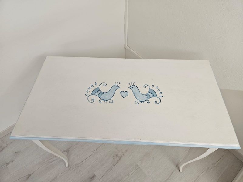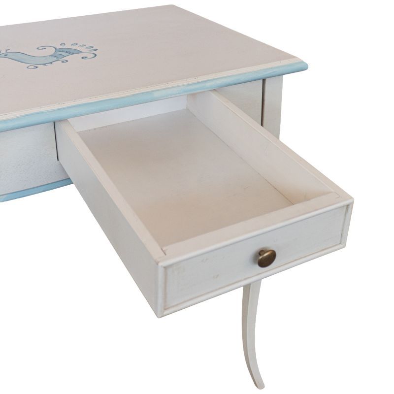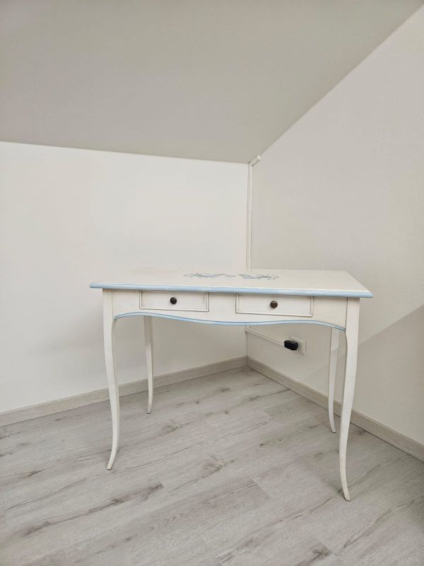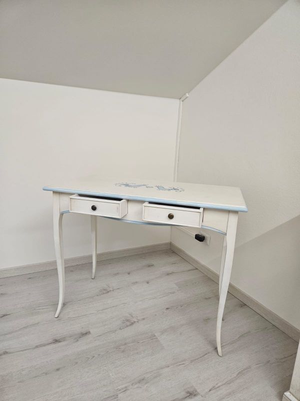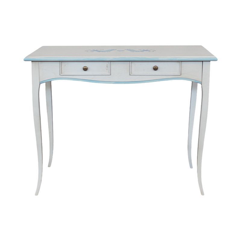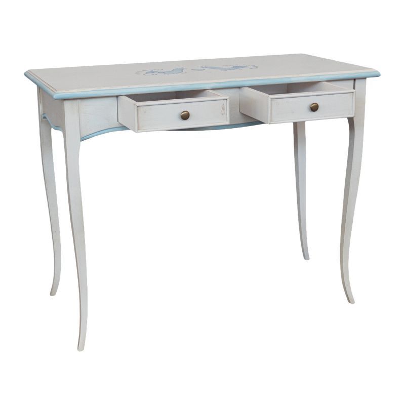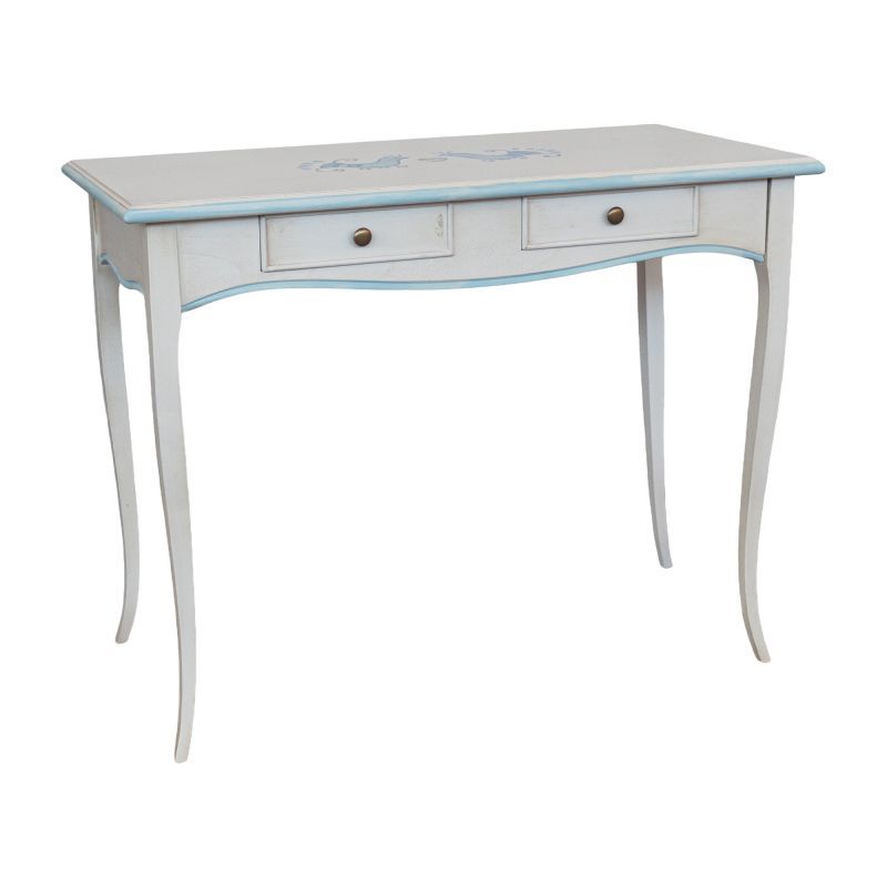 Consolle legno shabby bianco anticato filo azzurro pavoncella 101X55x80