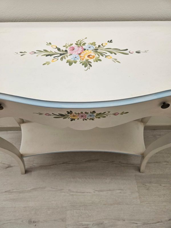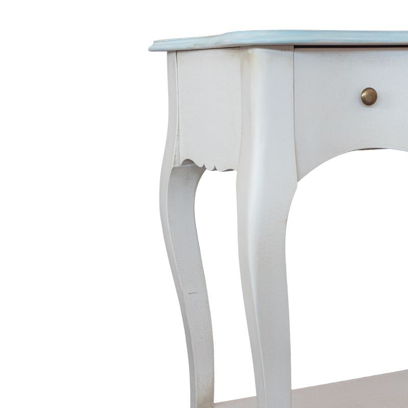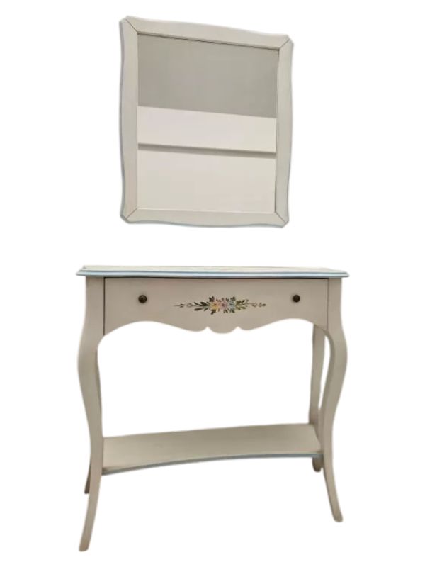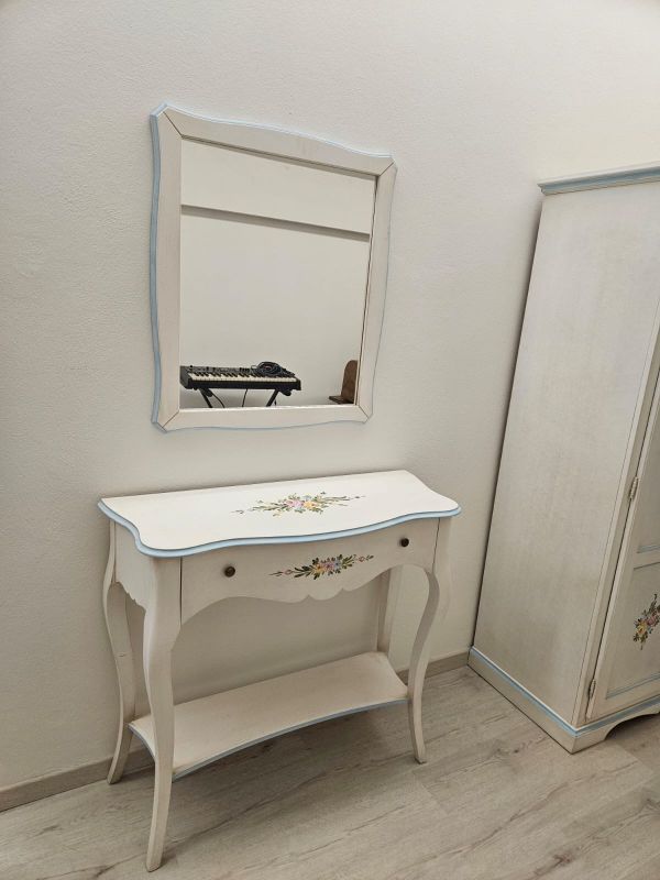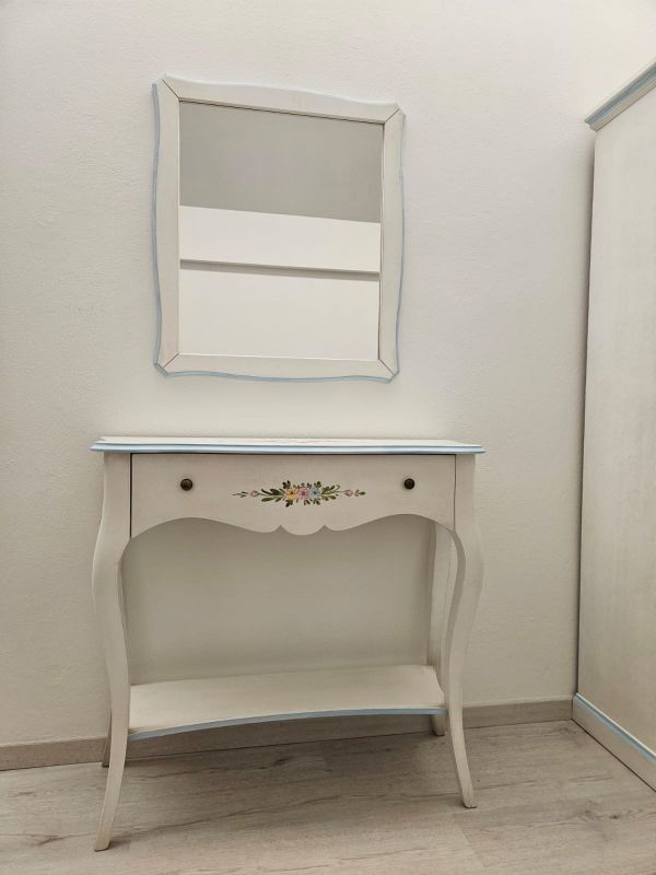 Consolle con specchio legno shabby bianco anticato decorato azzurro 100X40