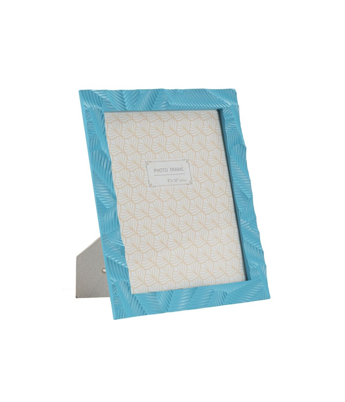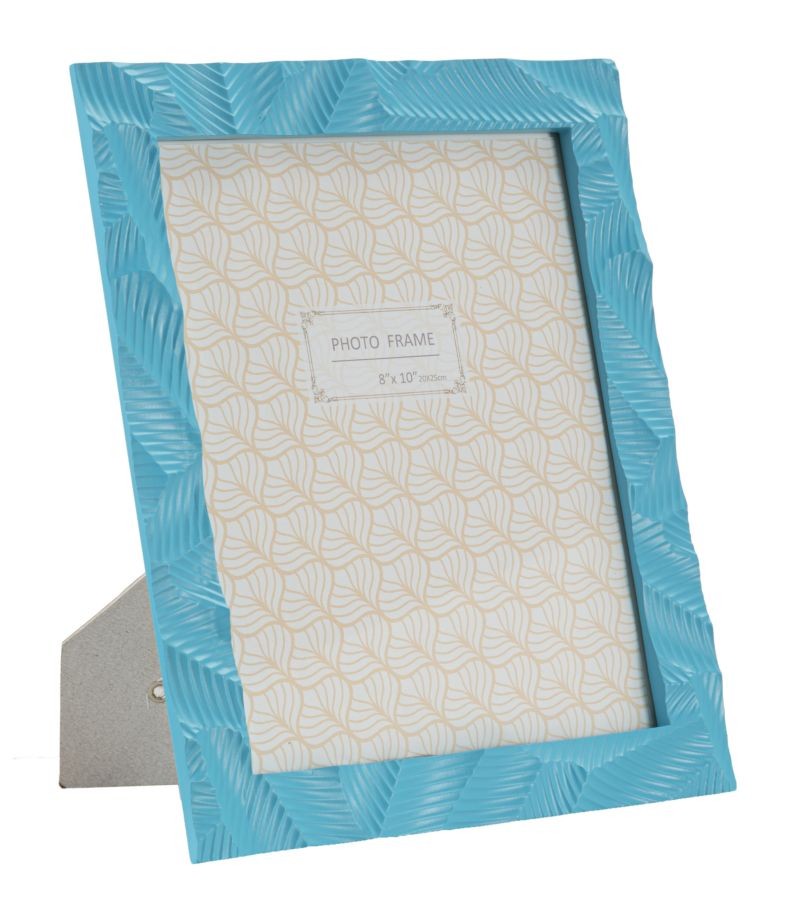 Cornice rettangolare da appoggio in resina celeste dal design semplice e geometrico. Può essere posizionata sia in orizzontale che in verticale. Dimensioni foto cm 20x25.