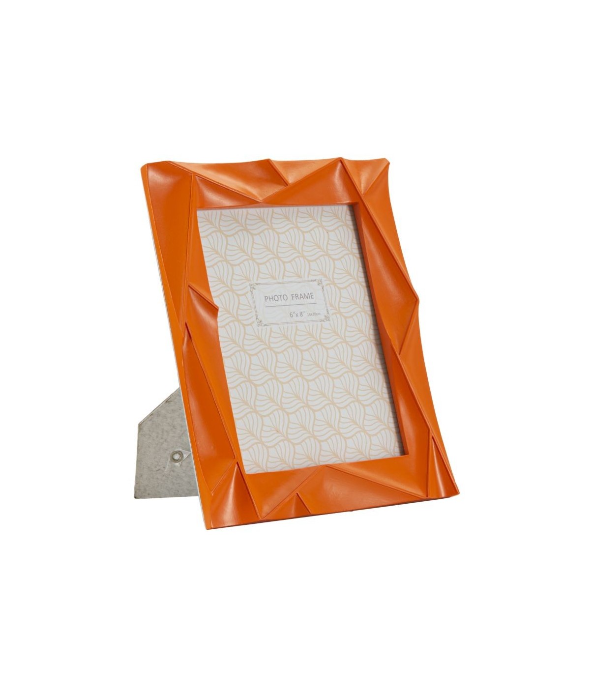 Cornice rettangolare da appoggio in resina arancione dal design semplice e geometrico. Può essere posizionata sia in orizzontale che in verticale. Dimensioni foto cm 15x20.