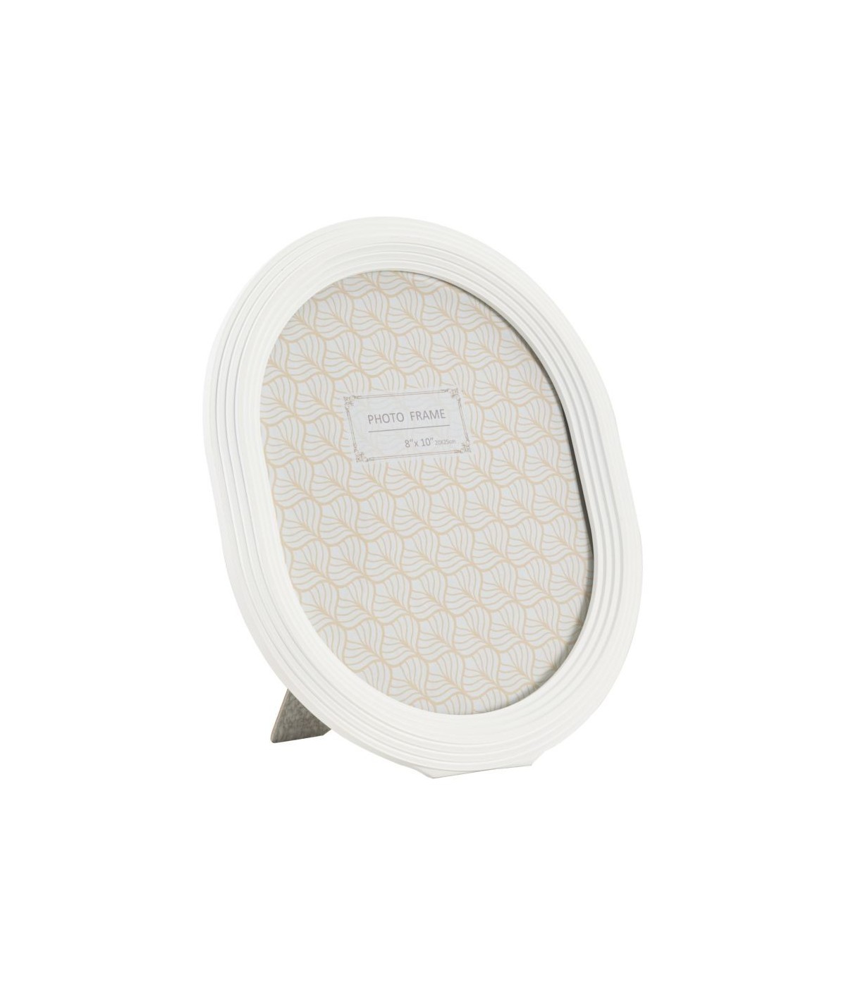 Cornice ovale da appoggio in resina bianca dal design semplice e lineare. Dimensioni foto cm 20x25.