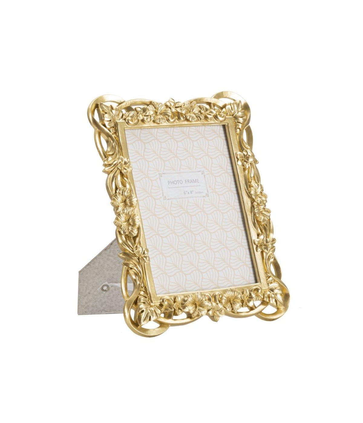 Cornice rettangolare da appoggio in resina dal design composto da un insieme di fiori e foglie. Può essere posizionata sia in orizzontale che in verticale. Dimensioni foto cm 15x20.