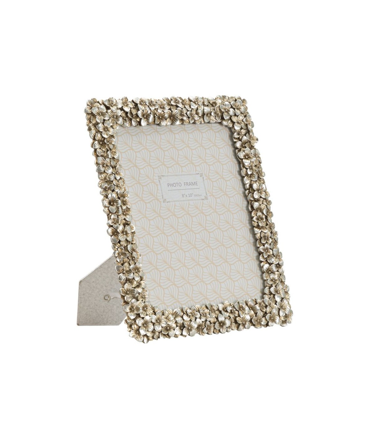 Cornice rettangolare da appoggio in resina dal design composto da un insieme di fiorellini. Può essere posizionata sia in orizzontale che in verticale. Dimensioni foto cm 20x25.