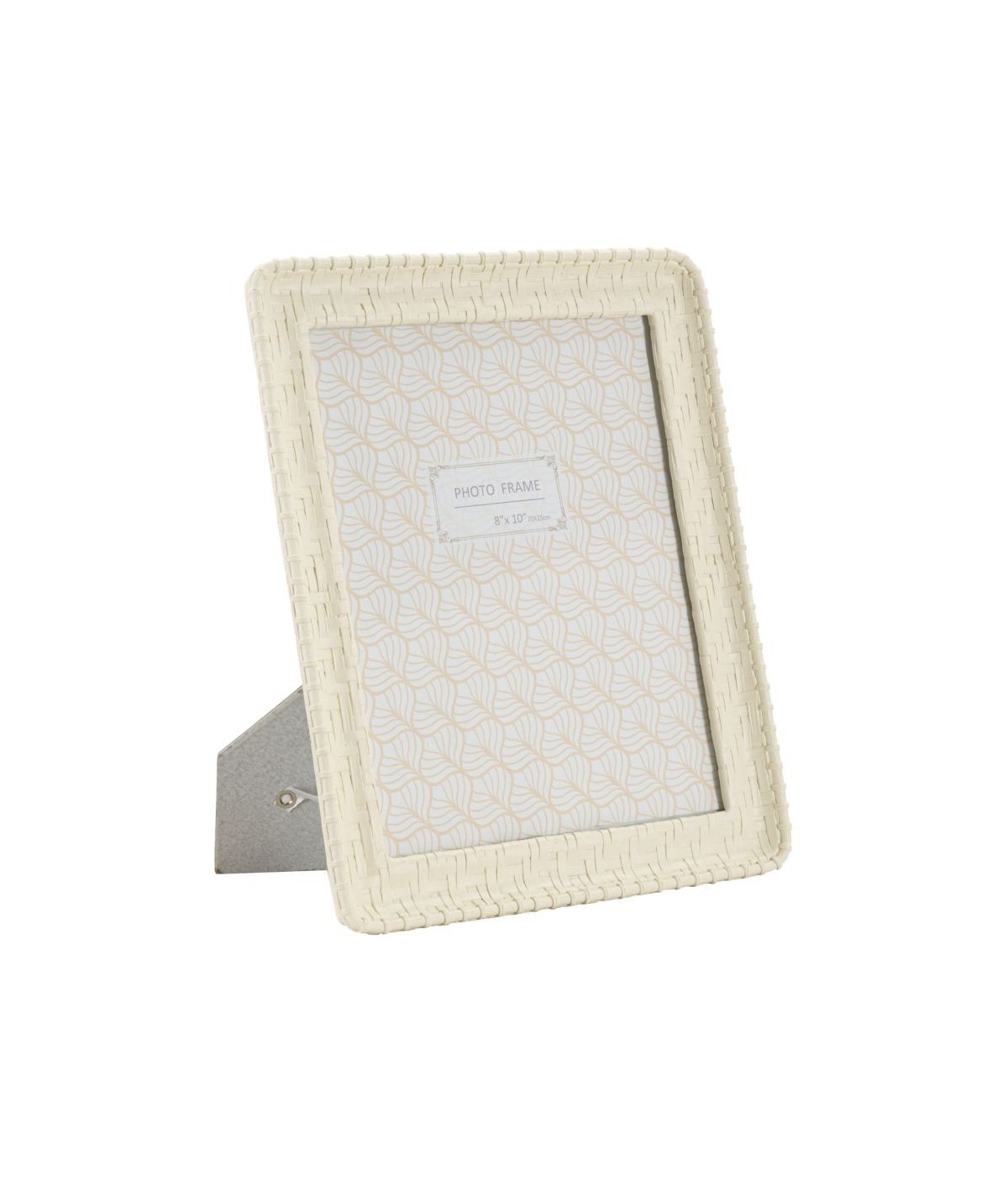 Cornice rettangolare da appoggio in resina realizzata con intrecci che richiamano il bamboo. Può essere posizionata sia in orizzontale che in verticale. Dimensioni foto cm 20x25.
