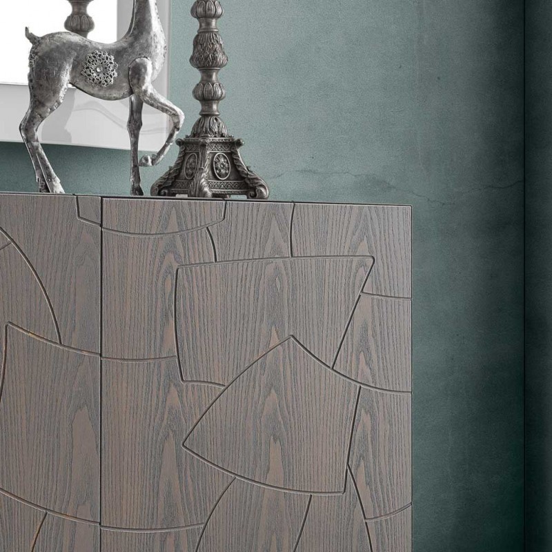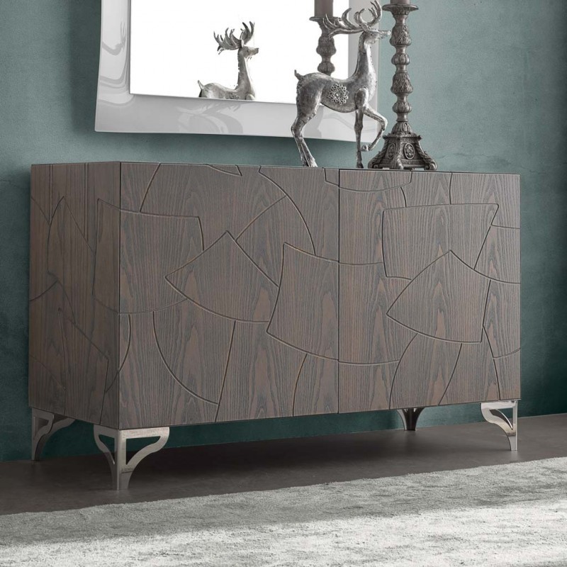 Madia di design grazie alle sue linee geometriche per aggiungere un tocco di eleganza e originalità alla casa. Elemento d' arredo funzionale e spazioso grazie al suo interno ben suddiviso mantenendo sempre in ordine accessori, borse e riviste. Questa madia può essere posizionata in ogni punto della casa o per ravvivare una parete e fungere anche da madia porta televisore.