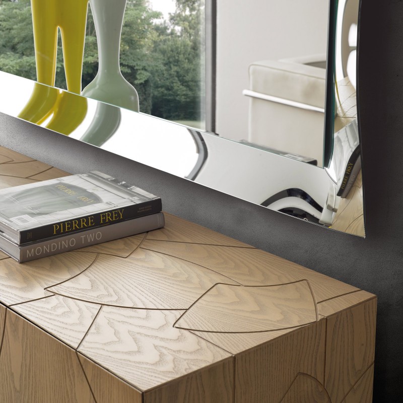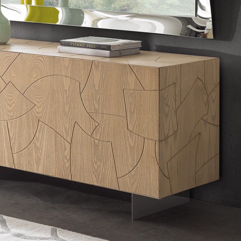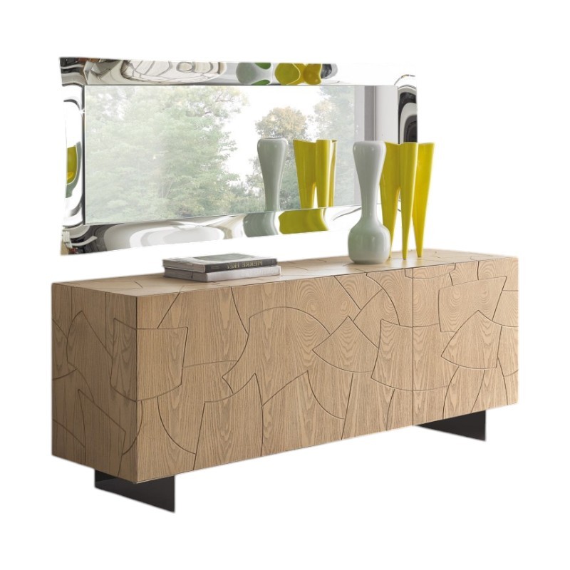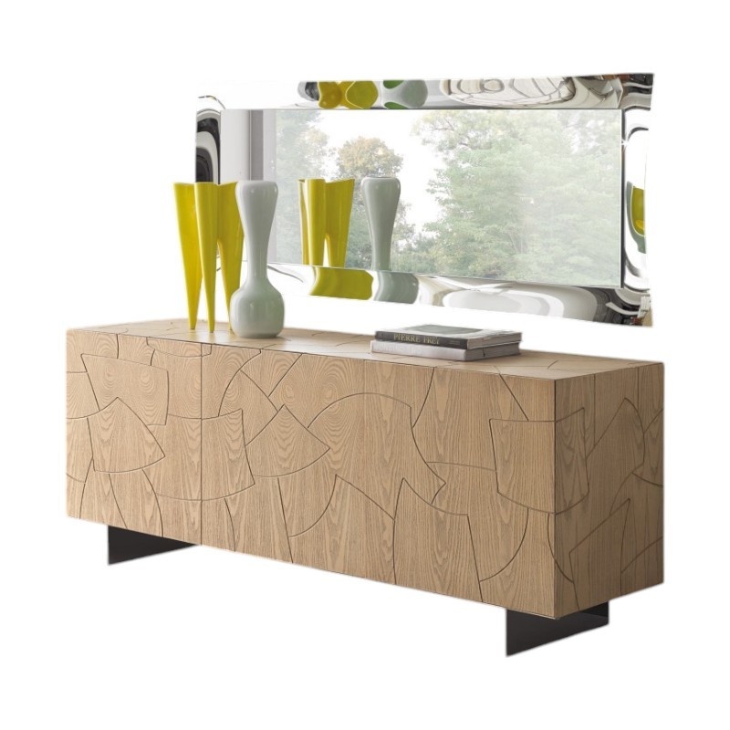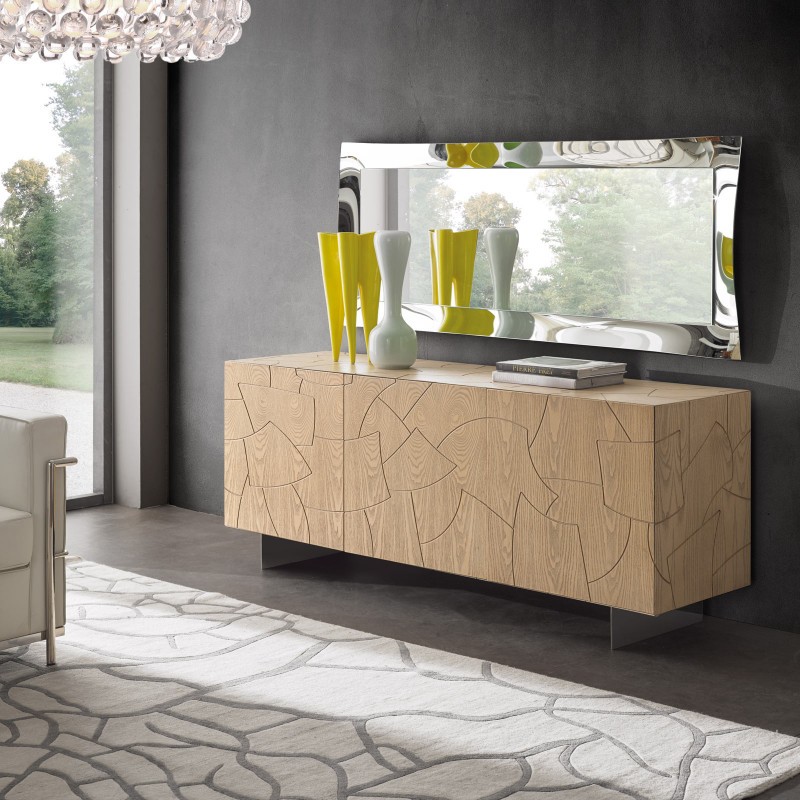 Madia di design grazie alle sue linee geometriche per aggiungere un tocco di eleganza e originalità alla casa. Elemento d' arredo funzionale e spazioso grazie al suo interno ben suddiviso mantenendo sempre in ordine accessori, borse e riviste. Questa madia può essere posizionata in ogni punto della casa o per ravvivare una parete e fungere anche da madia porta televisore.