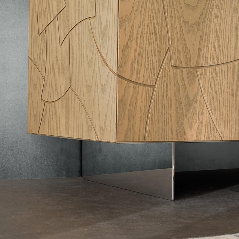 Madia 3 Ante contemporanea Legno massello gambe acciaio 180X45X73 (301)