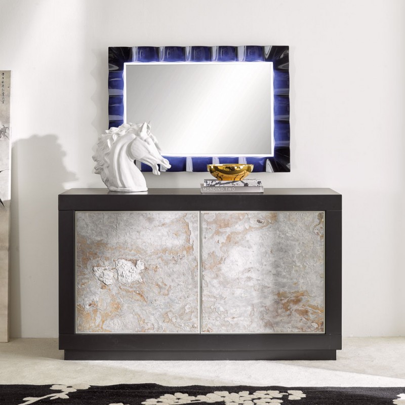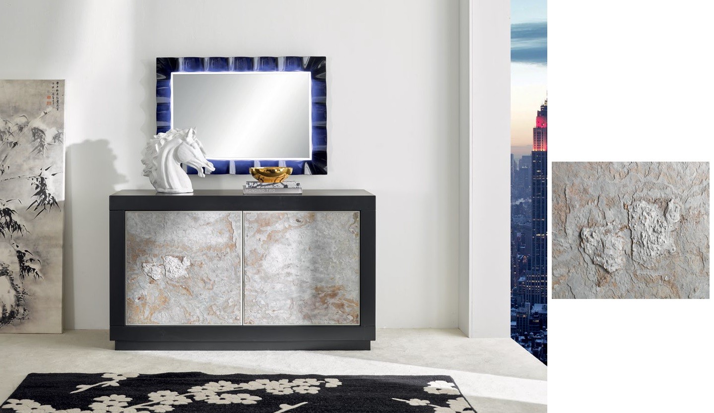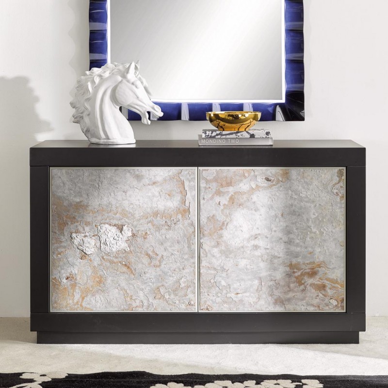 Madia 2 Ante contemporanea Legno massello nero effetto pietra 142X45X85 (307)