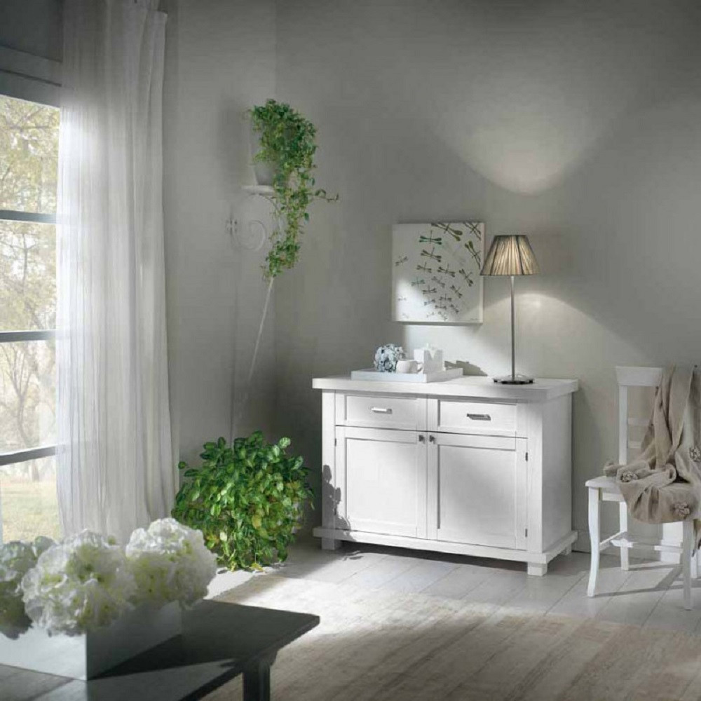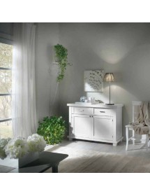 MADIA CREDENZA IN LEGNO MASSELLO 2 ANTE BIANCO SPIGOLATO L.120 P.45 H.83