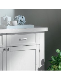 Credenza con due ante e due cassetti. All’interno delle ante si trova un ripiano. Schienale di forte spessore diamantato.