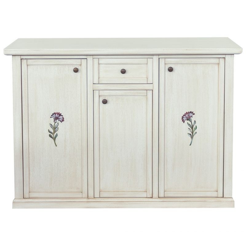 Madia Credenza 3 porte 1 cassetto shabby bianco anticato decori 120X39X85