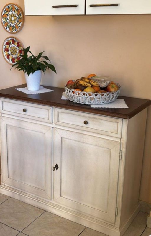 Credenza bassa shabby bicolore: stile e funzionalità per ambienti romantici