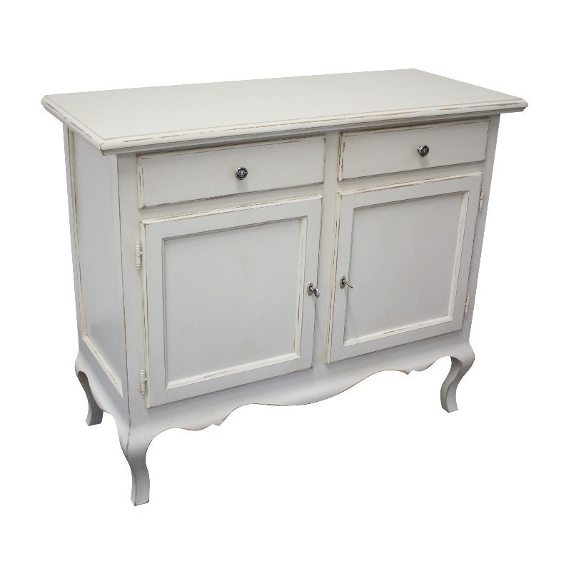Madia credenza 2 porte 2 cassetti legno shabby bianco consumato 114x49x97 (3064)