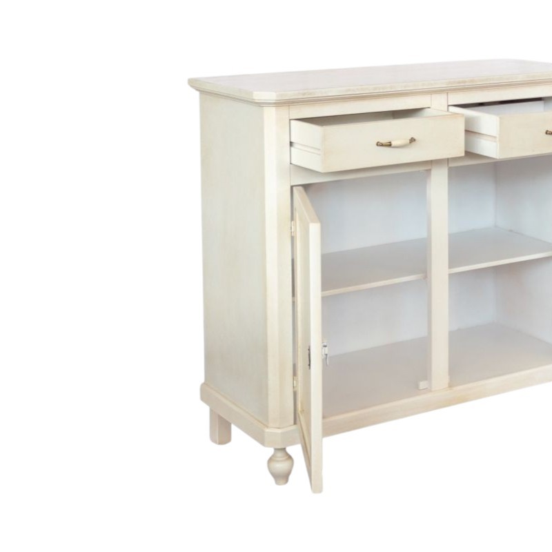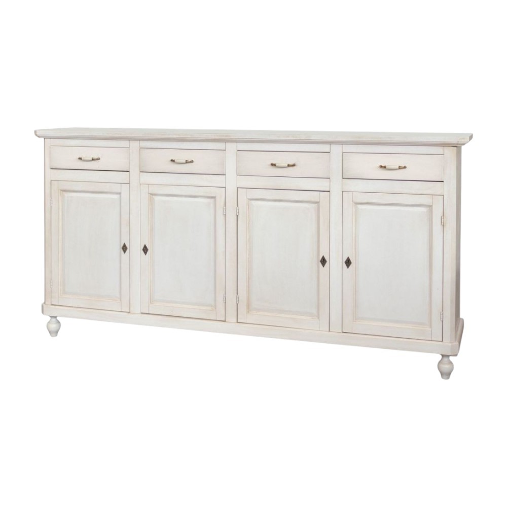 Credenza 4 porte 4 cassetti legno shabby bianco anticato maniglia porcellana 196X45X98