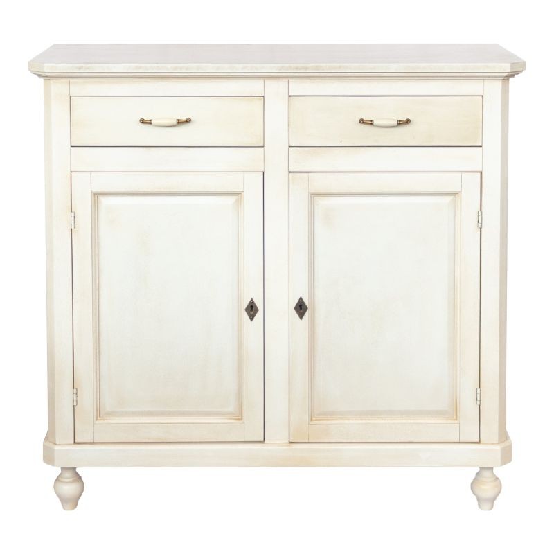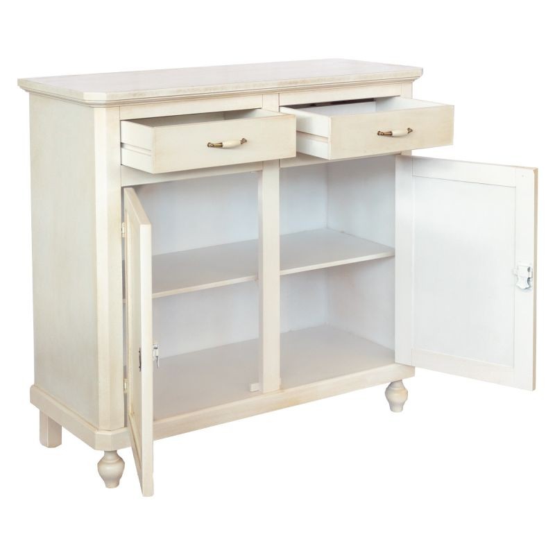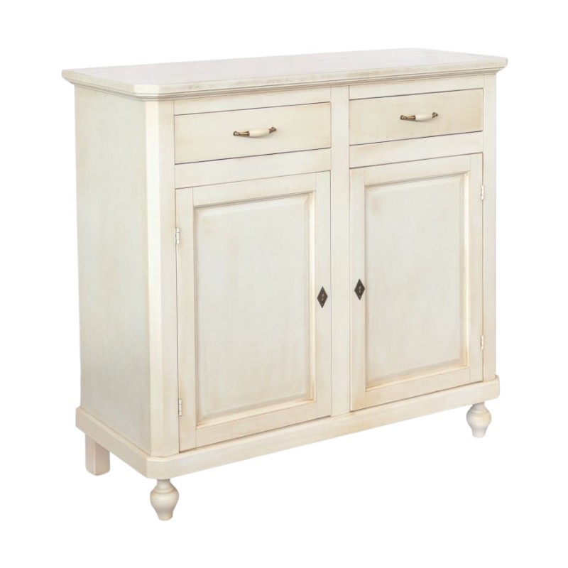 Credenza 2 porte 2 cassetti legno shabby bianco anticato maniglia porcellana 105X45X98