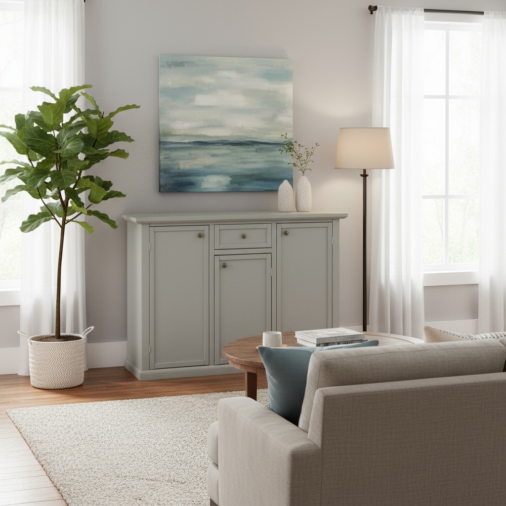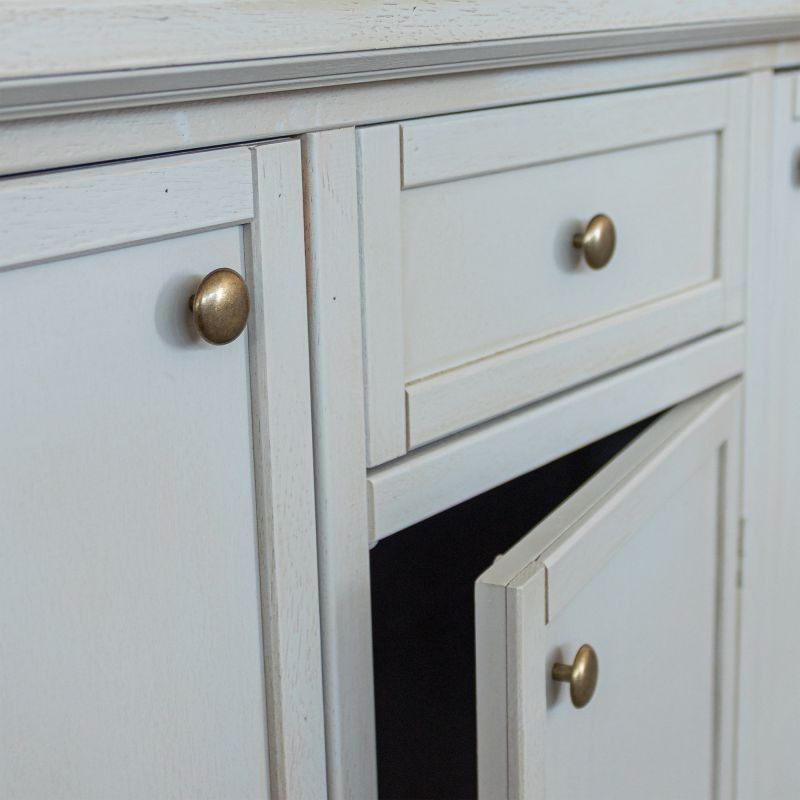 Grazie alle sue dimensioni contenute, la credenza si adatta ad ambienti con poco spazio, a cui non mancherà di dare un tocco di eleganza e sobrietà.