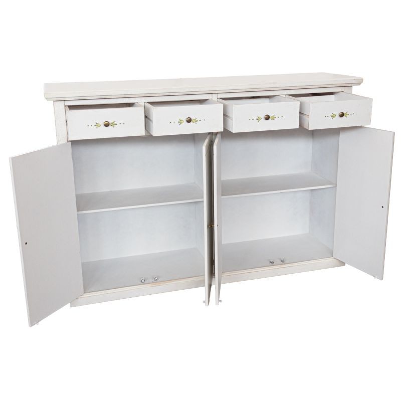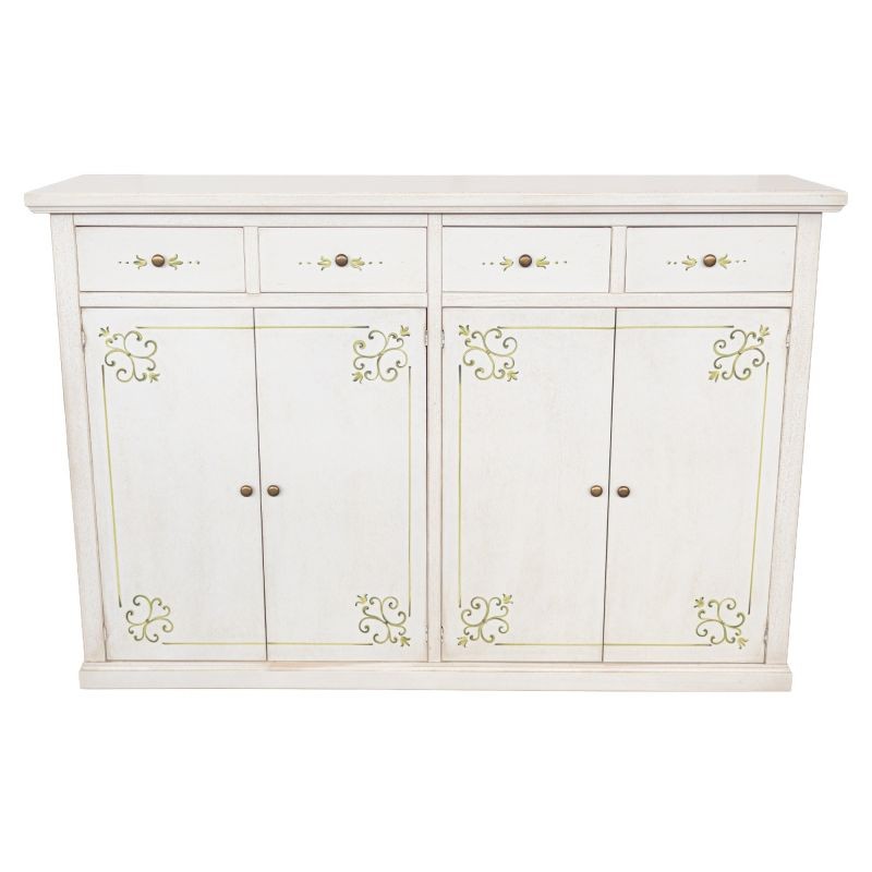 Madia Credenza legno 4 porte shabby bianco anticato decoro filo verde 160X40X110