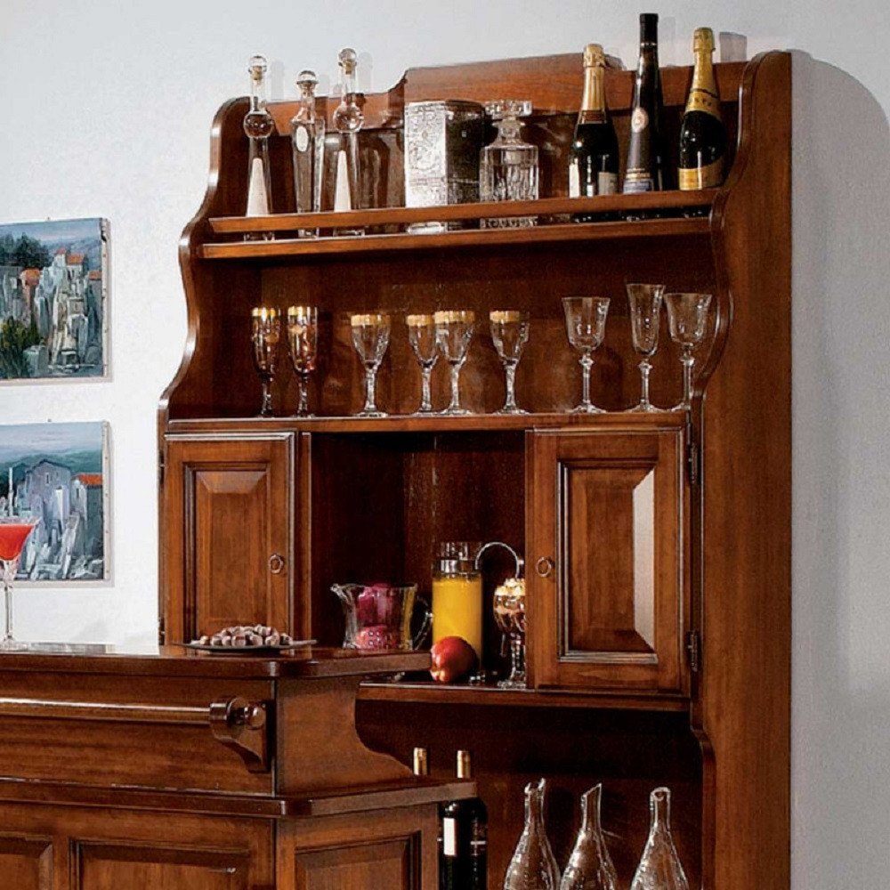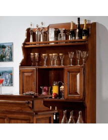 Mobile bar da posizionare a muro, dotato di ripiano destinati ad accogliere bicchieri e bottiglie ma anche di due pratiche antine bugnate.