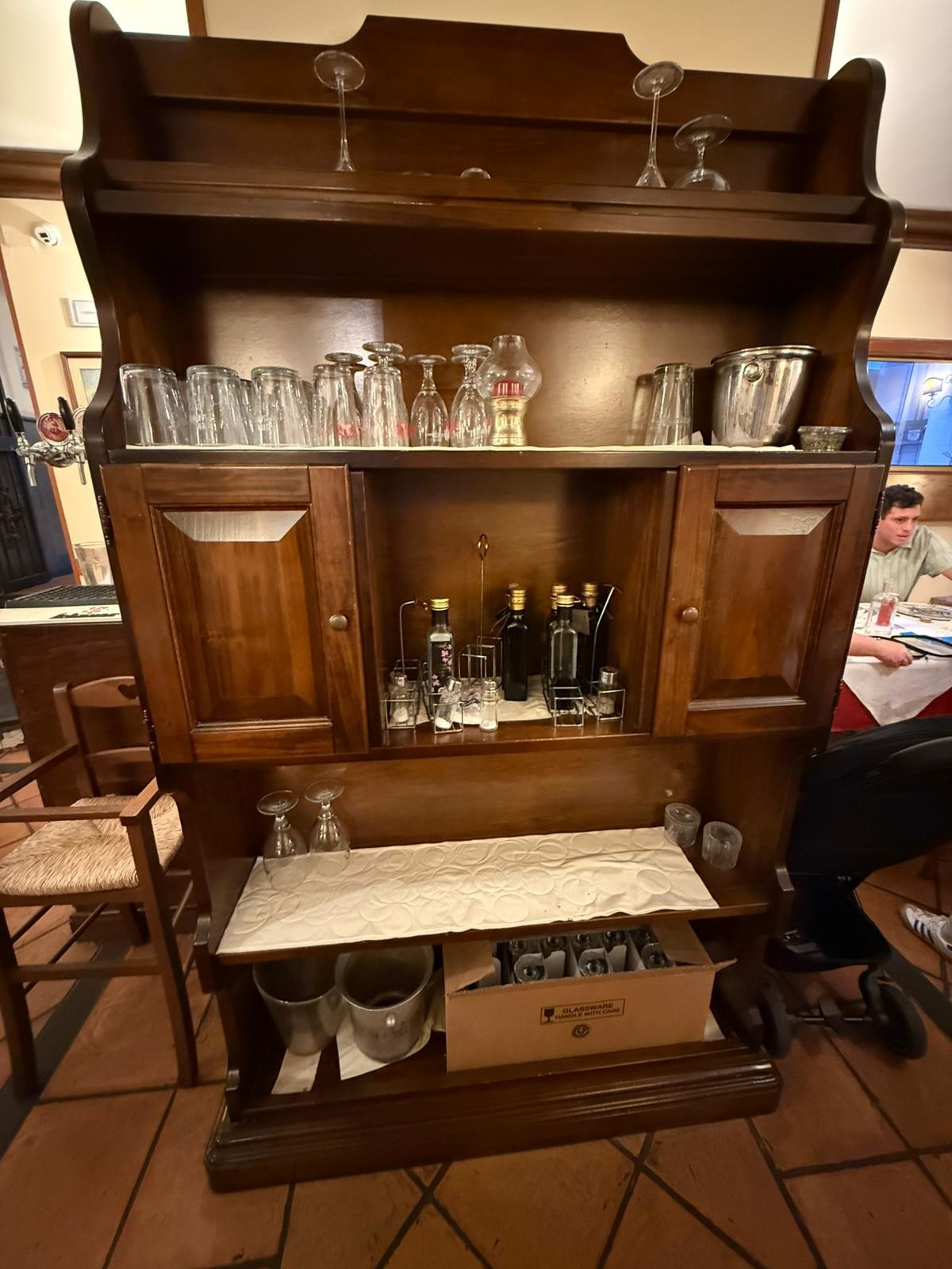Mobile bar perfetto per arredare un’ampia sala da pranzo o una taverna in stile classico o rustico.