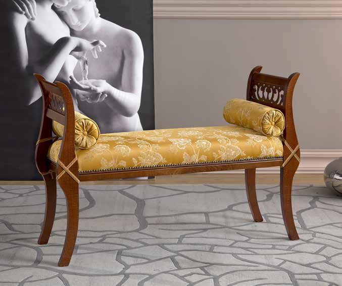 PANCA IMBOTTITA IN LEGNO INTAGLIATO CON FREGI