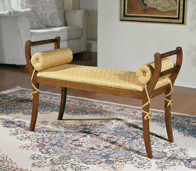 PANCA IMBOTTITA IN LEGNO INTAGLIATO CON FREGI