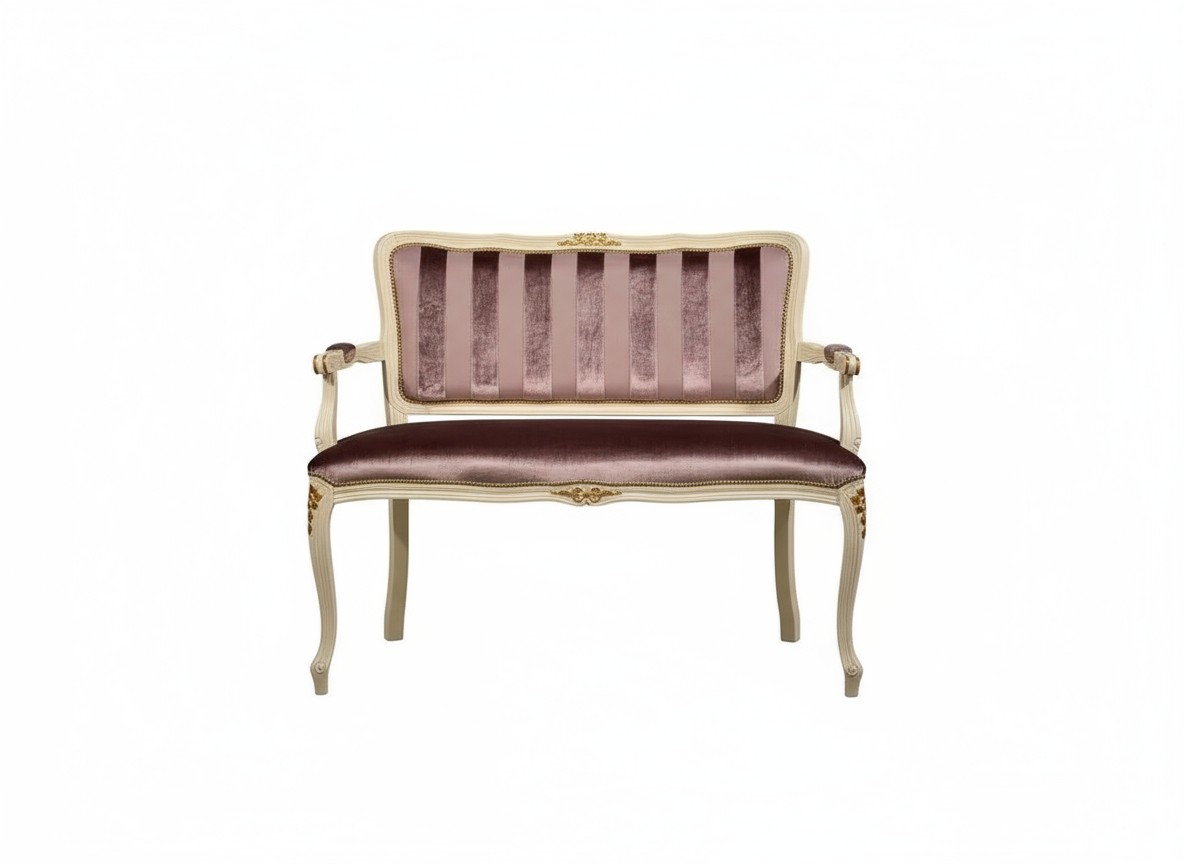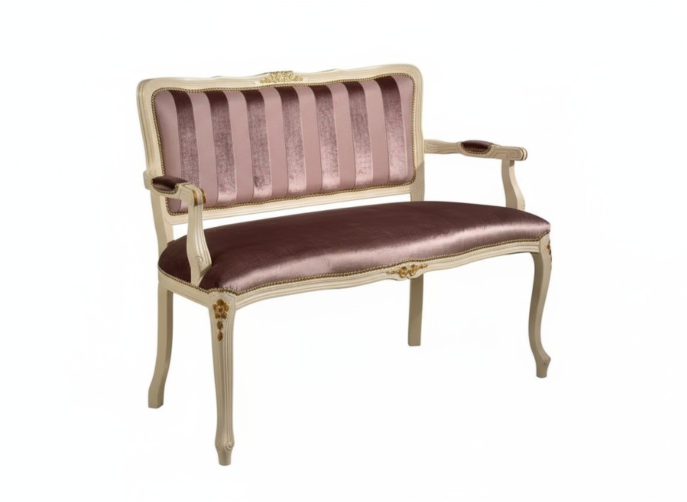 DIVANETTO IMBOTTITO LEGNO AVORIO FREGI ORO 115x51x91