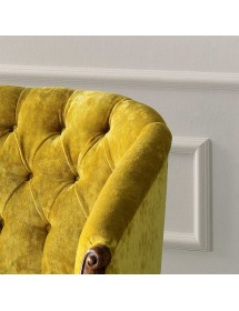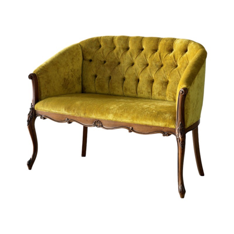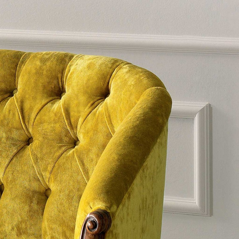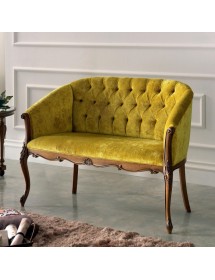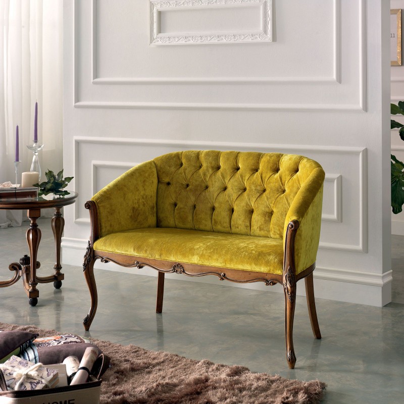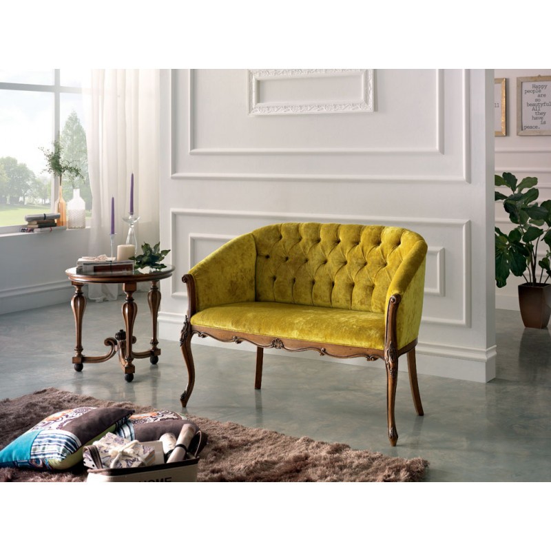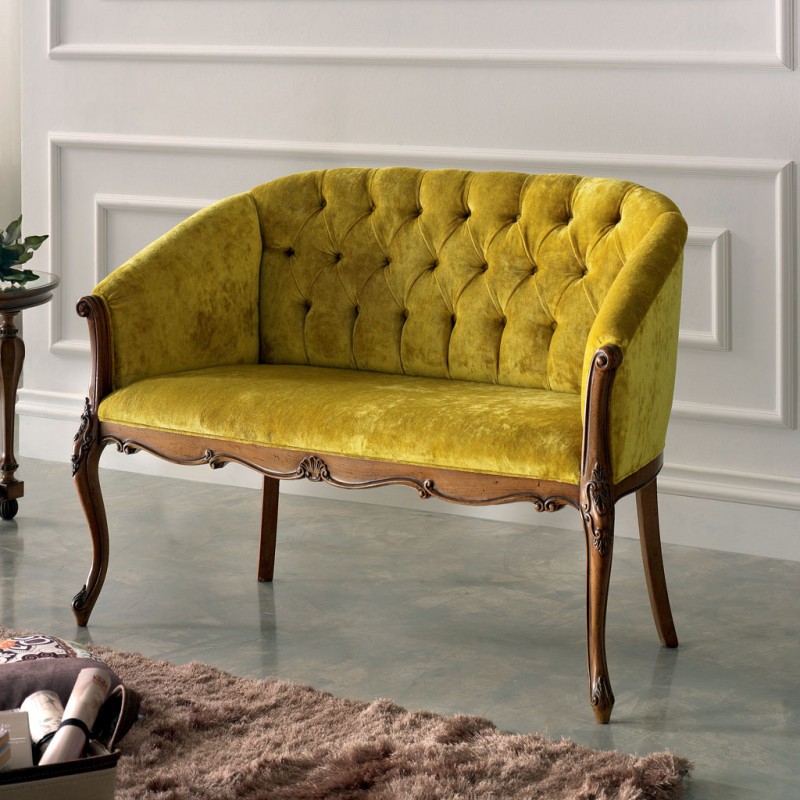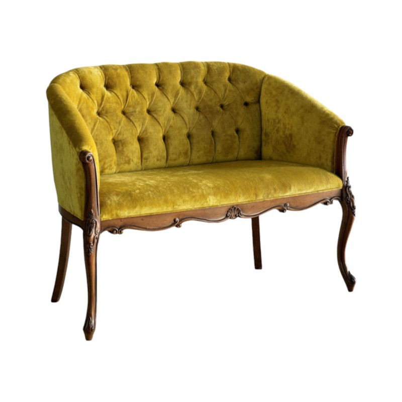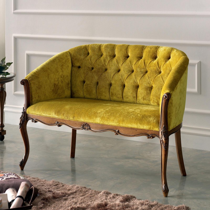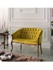 Divano classico 2 posti legno imbottito tessuto senape 123X62X90
