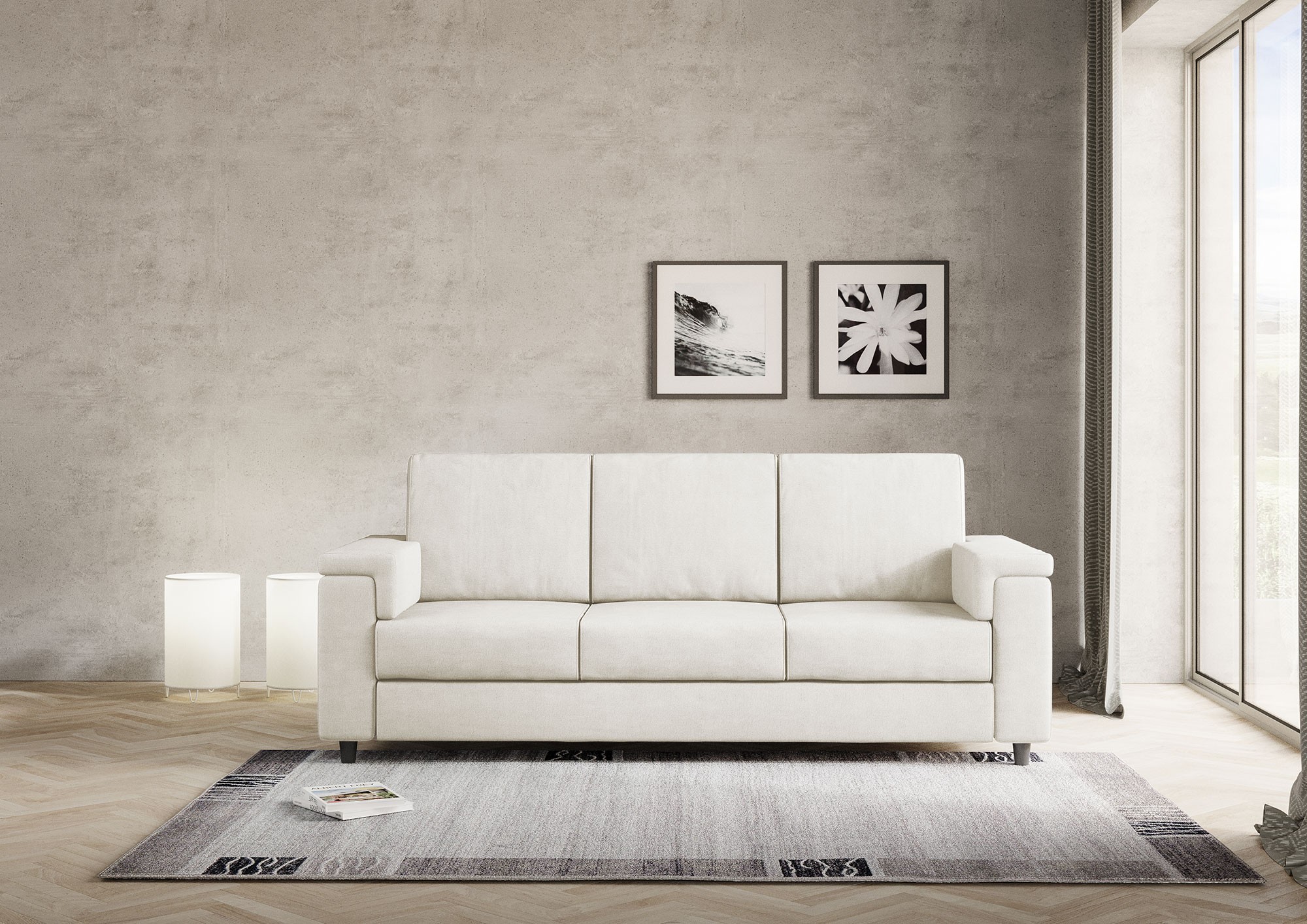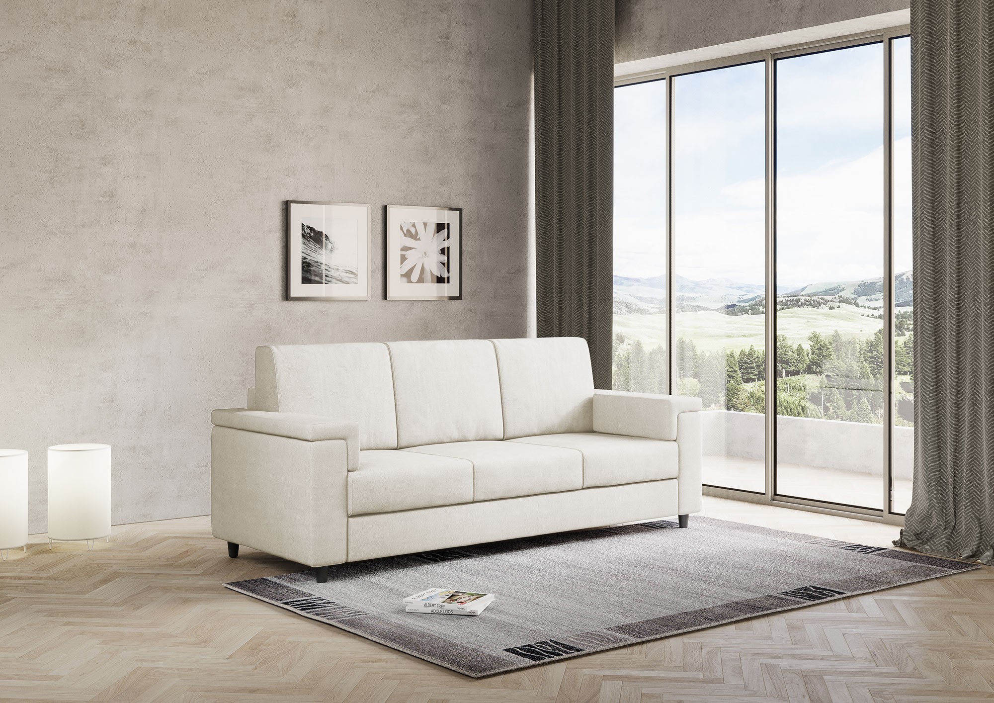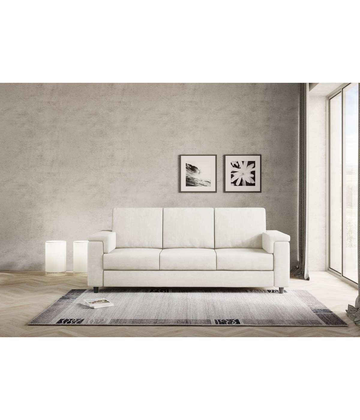 Aggiungi un tocco di stile e comfort al tuo salotto con il nostro divano a 3 posti. Con un design elegante e confortevole, questo divano è l'aggiunta perfetta per creare un ambiente accogliente e di classe nella tua casa. La seduta del divano garantisce un comfort eccezionale grazie alla distribuzione uniforme del peso sul cuscino, assicurata dal contatto con il retro-schienale. Potrai rilassarti comodamente e goderti piacevoli momenti di riposo senza alcun fastidio. Realizzato con materiali di alta qualità, inclusi un robusto telaio e un'imbottitura in schiuma ad alta densità, questo divano offre durata e comfort a lungo termine. Potrai goderti il tuo divano per anni senza compromettere il suo aspetto elegante e le sue prestazioni confortevoli. Il design elegante e moderno del divano si adatta senza problemi a qualsiasi ambiente e stile di arredamento. Le linee pulite e il look minimalista aggiungono un tocco di raffinatezza al tuo salotto. Inoltre, le colorazioni dei rivestimenti sono versatili e facili da abbinare con gli altri mobili presenti. Il divano Marrak a 3 posti rappresenta la scelta ideale per coloro che cercano il massimo comfort e stile nella propria casa. Aggiungendolo al tuo spazio, potrai creare un ambiente accogliente per te, la tua famiglia e i tuoi amici. Goditi piacevoli momenti di relax e convivialità, sapendo di avere un divano di qualità che ti accompagnerà nel tempo.