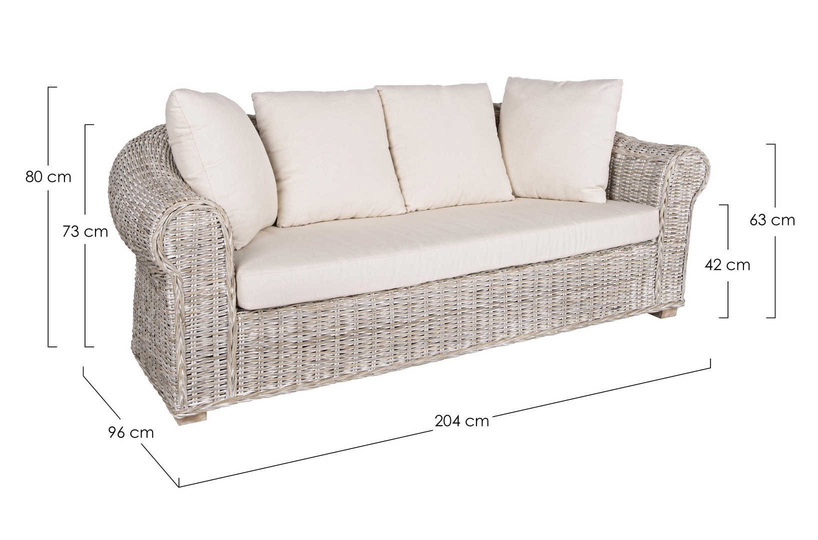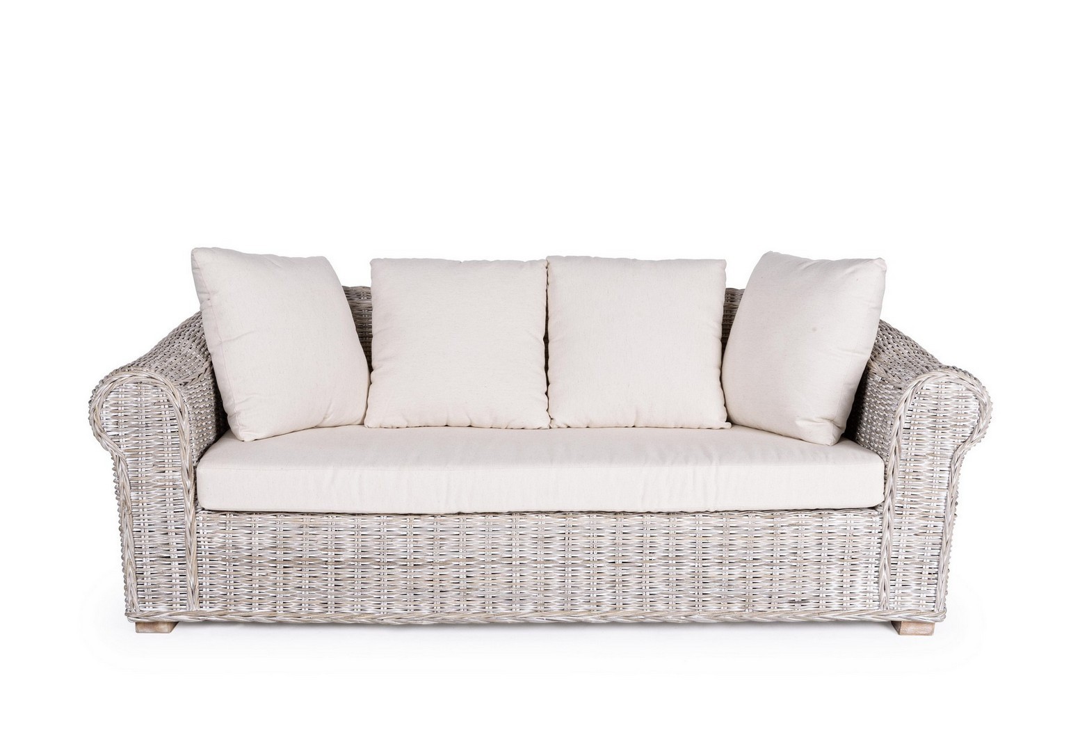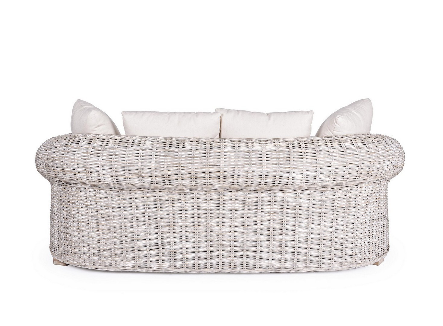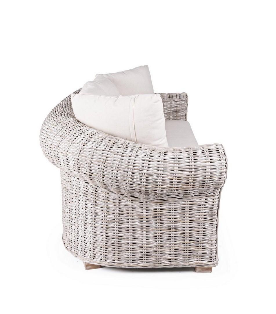 STRUTTURA IN RATTAN, INTRECCIO IN KUBU, FINITURA A BASE DI NITROCELLULOSA. PIEDINI IN LEGNO DI MANGO. CUSCINI SFODERABILI CON TESSUTO PER USO INTERNO (LINO). SI RACCOMANDA DI NON ESPORRE IL MOBILE ALLA LUCE DIRETTA DEL SOLE E ALLE INTEMPERIE. IMBALLO SENZA CARTONE.