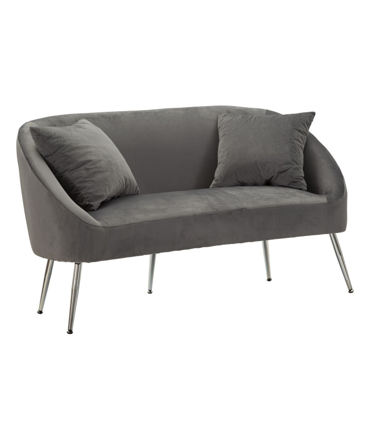Divano due posti grigio con gambe argentate da assemblare, rivestito in morbida velluto. Ideale per ambienti moderni e raffinati, aggiunge un tocco di lusso e comfort.