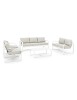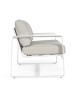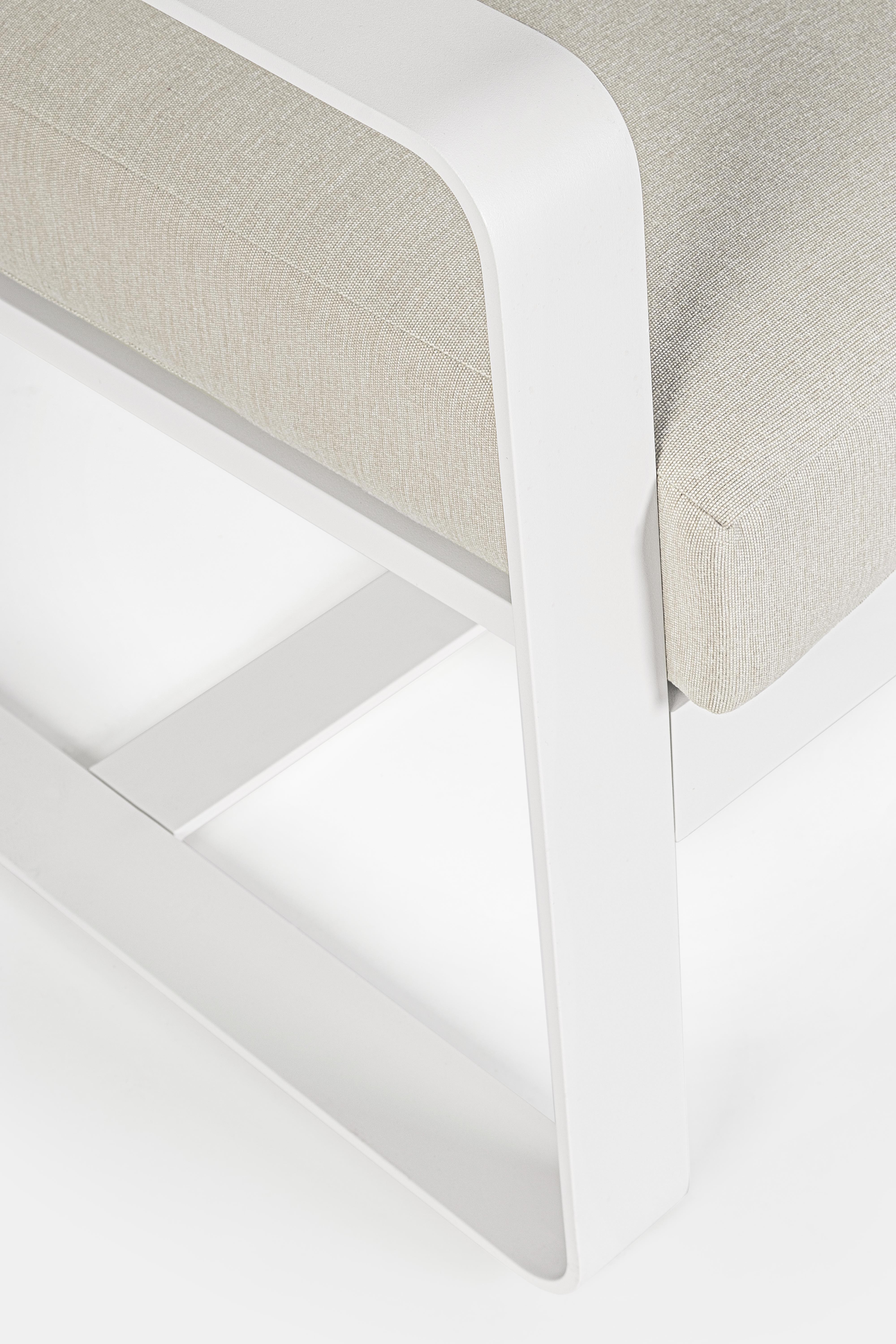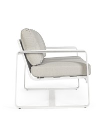 ALLUMINIO VERNICIATO A POLVERE (POLIESTERE). CUSCINI SEDUTA E SCHIENALE SFODERABILI CON TESSUTO IDROREPELLENTE OLEFIN (100% POLIPROPILENE). DA ASSEMBLARE.