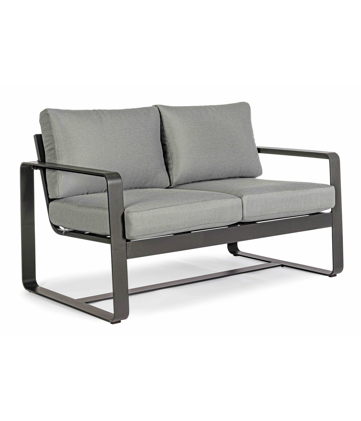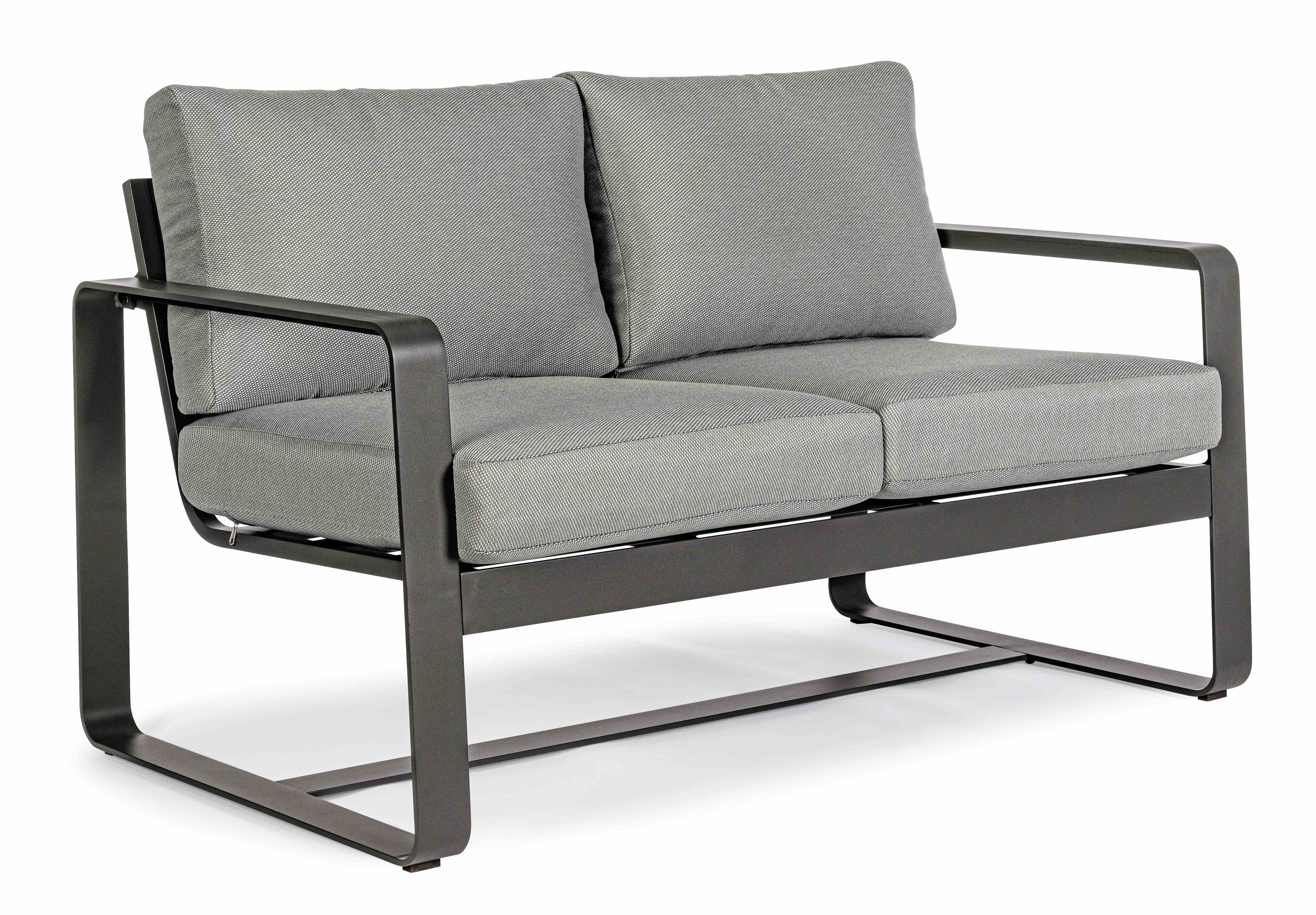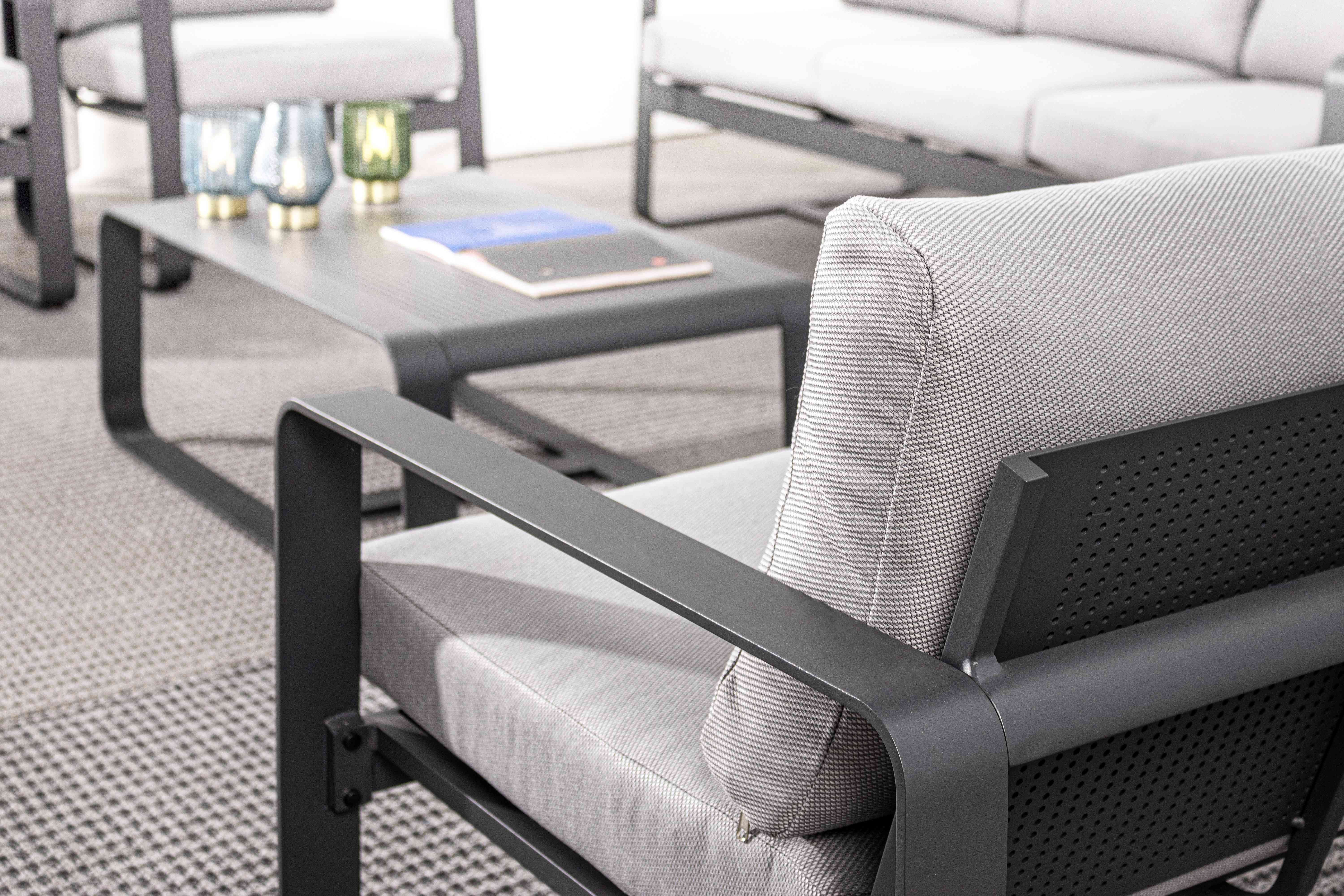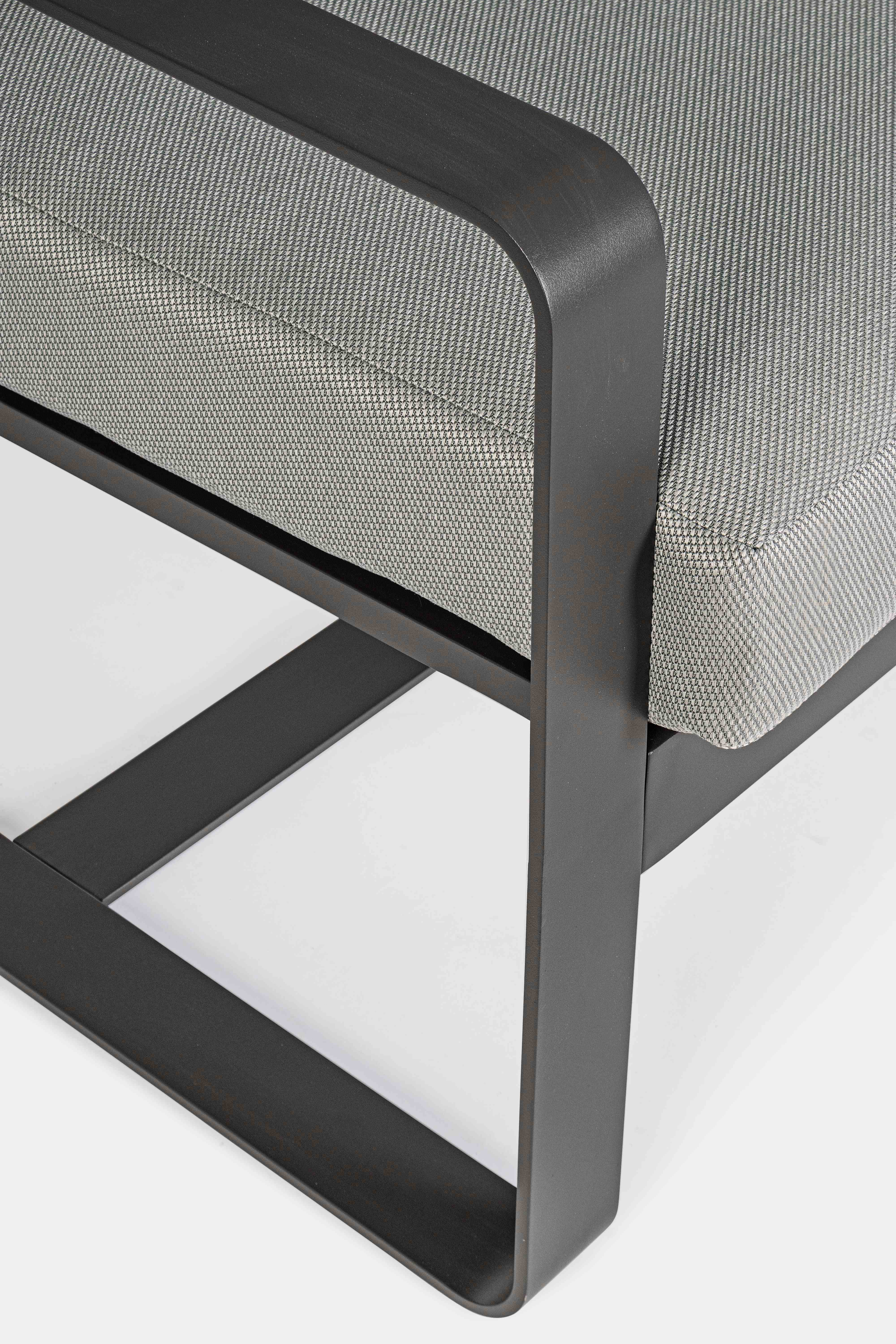 ALLUMINIO VERNICIATO A POLVERE (POLIESTERE). CUSCINI SEDUTA E SCHIENALE SFODERABILI CON TESSUTO IDROREPELLENTE OLEFIN (100% POLIPROPILENE). DA ASSEMBLARE.