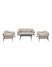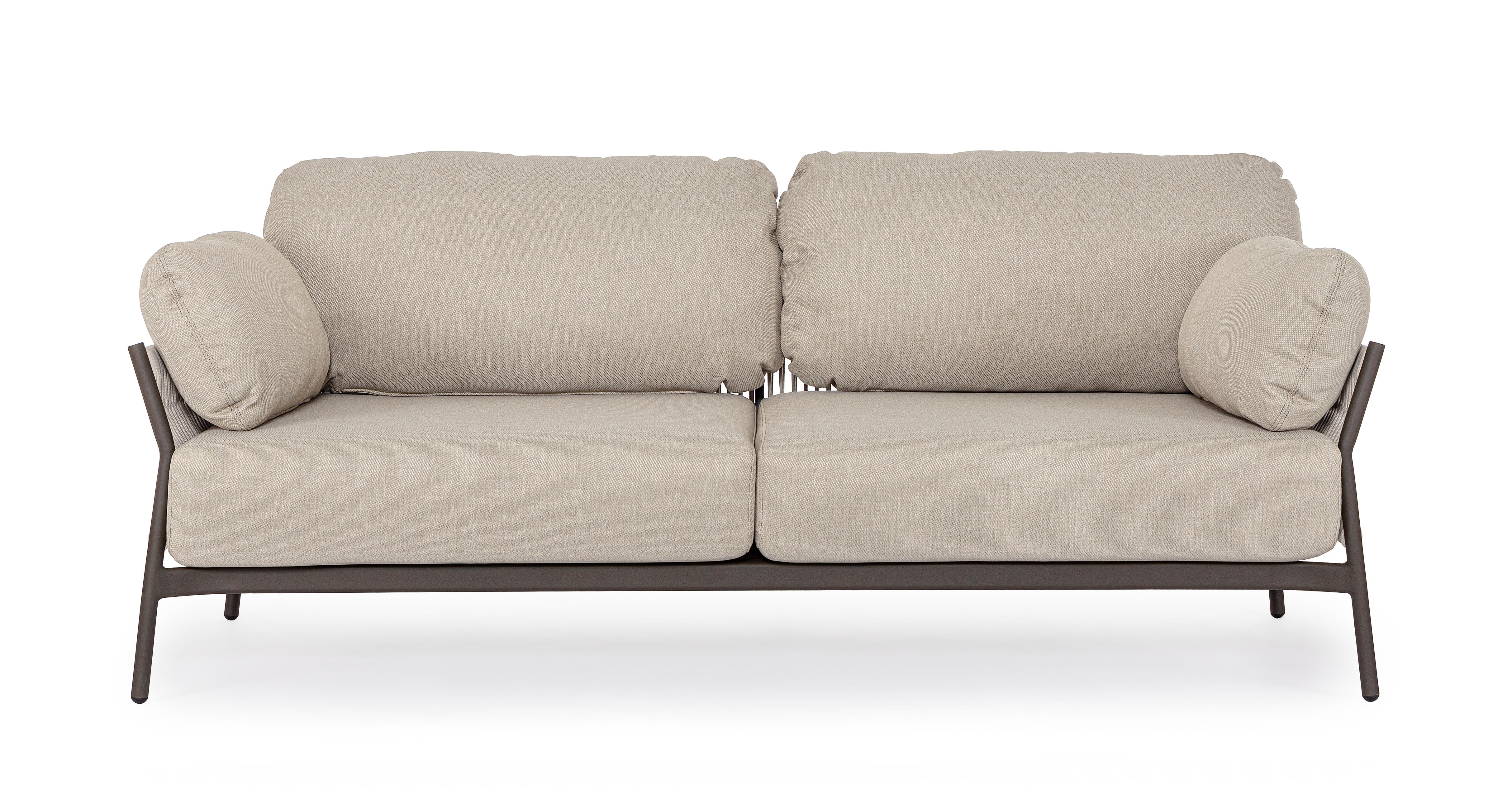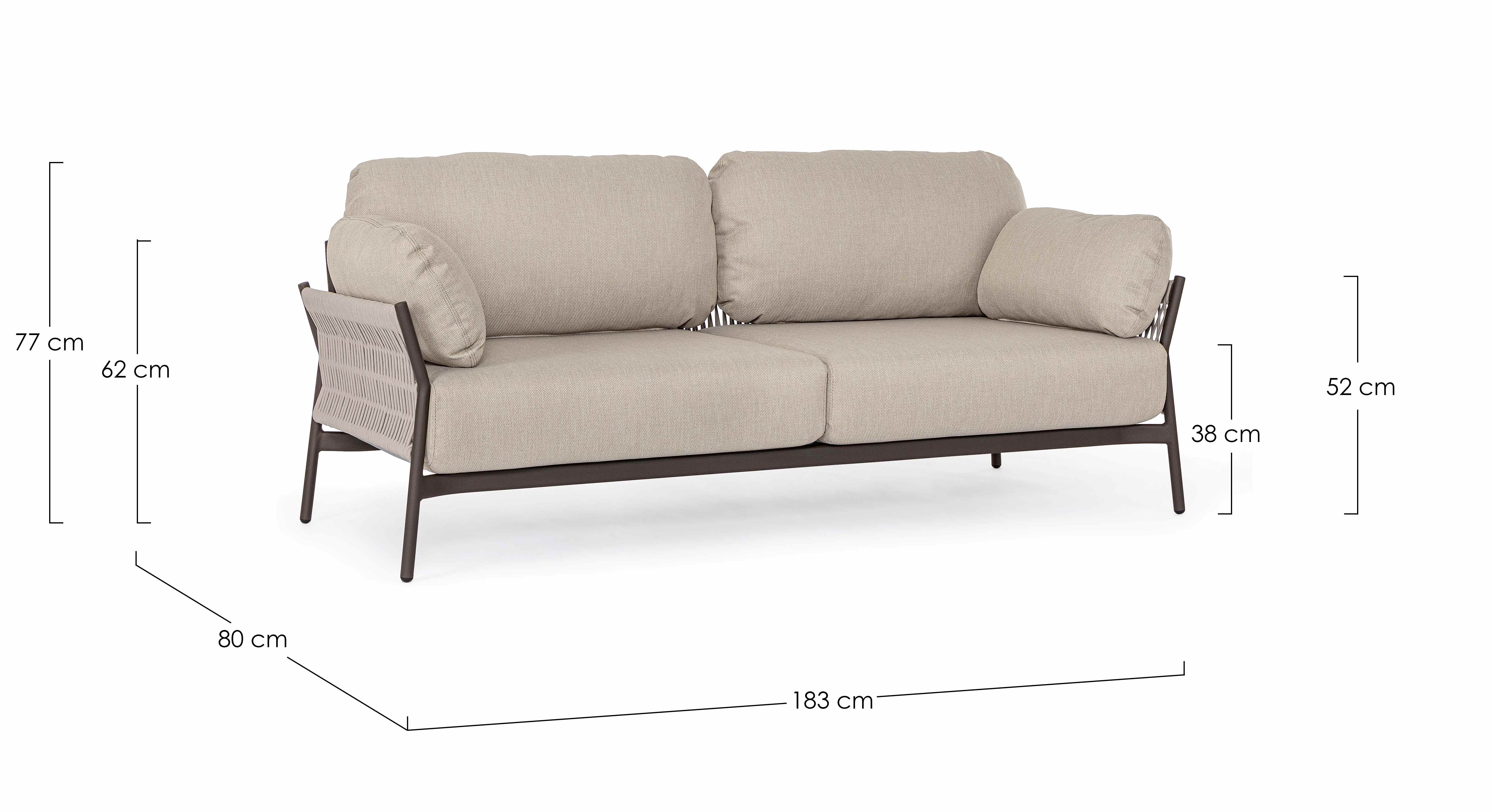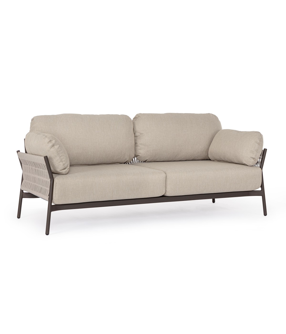 STRUTTURA IN ALLUMINIO VERNICIATO A POLVERE (POLIESTERE). INTRECCIO IN CORDA OLEFIN (100% POLIPROPILENE). CUSCINI SEDUTA E SCHIENALE SFODERABILI IN TESSUTO IDROREPELLENTE OLEFIN (100% POLIPROPILENE).