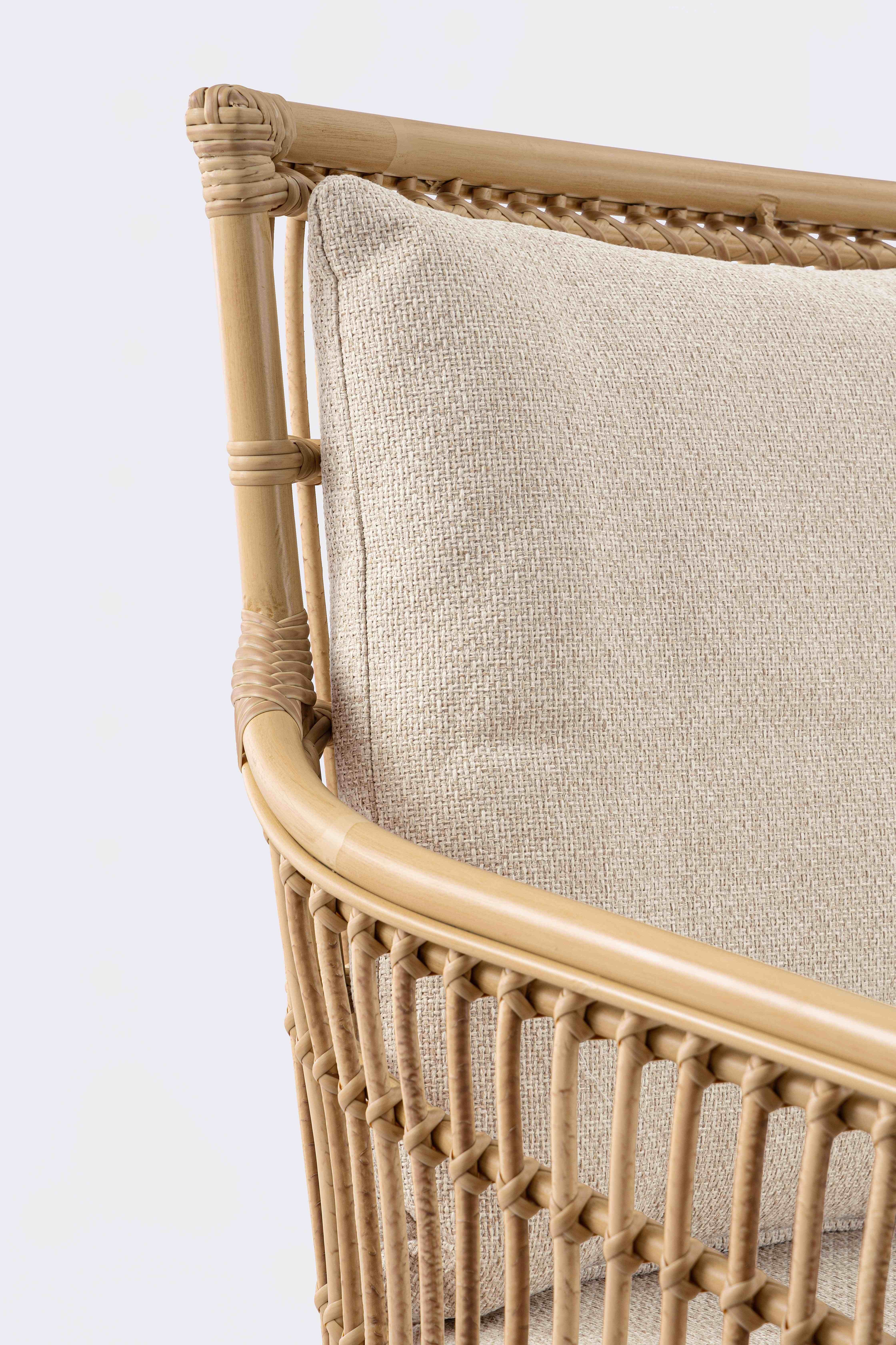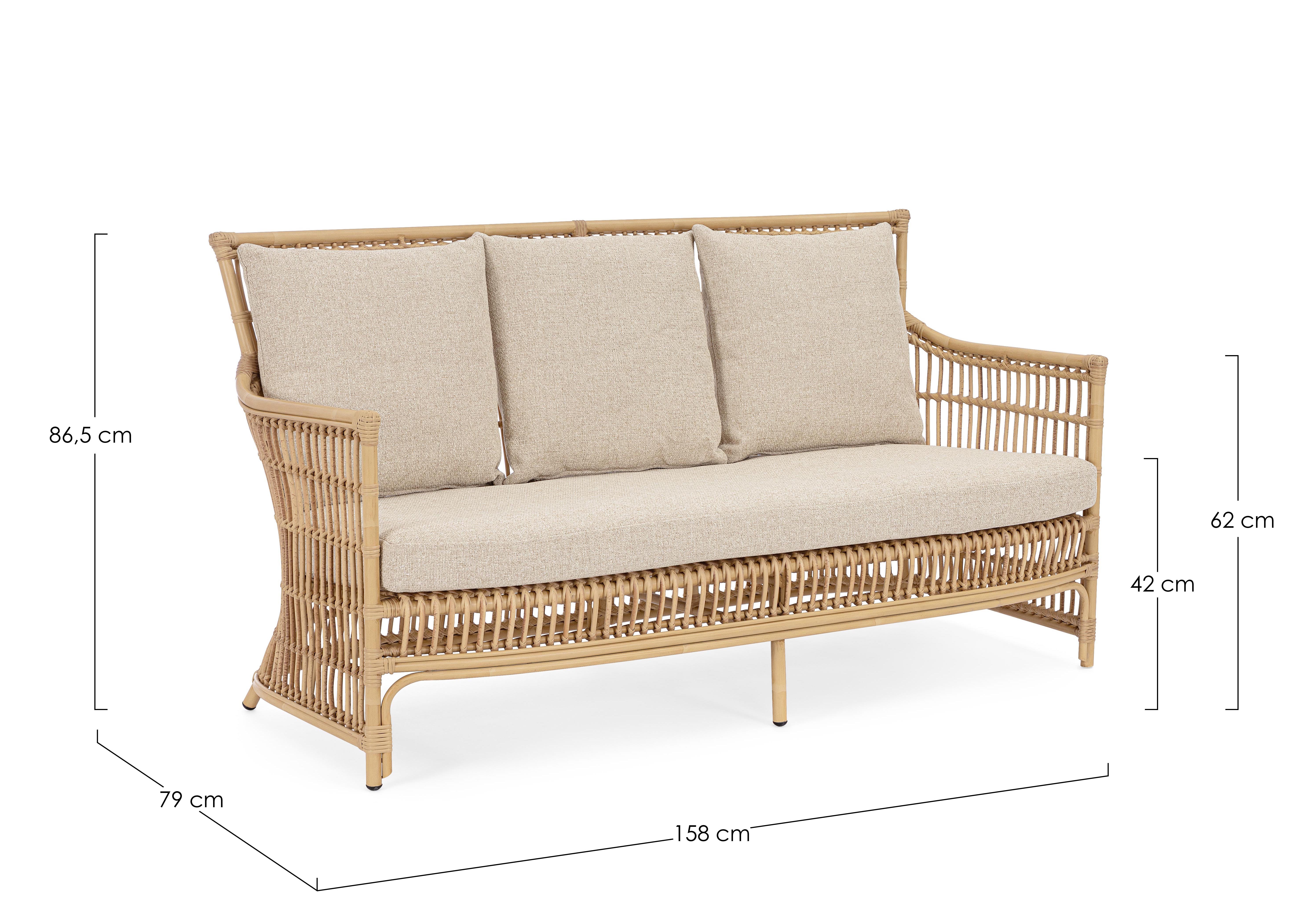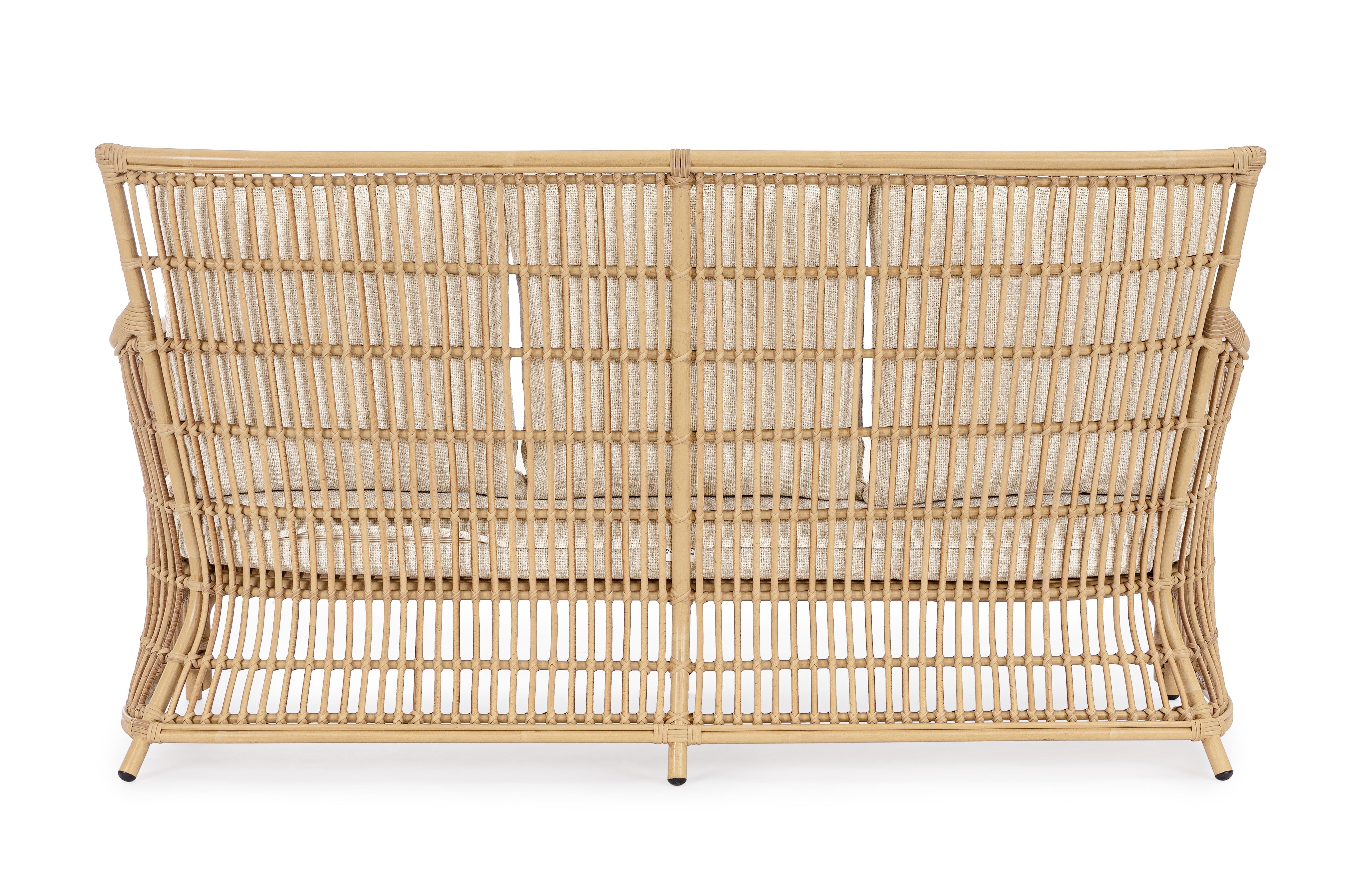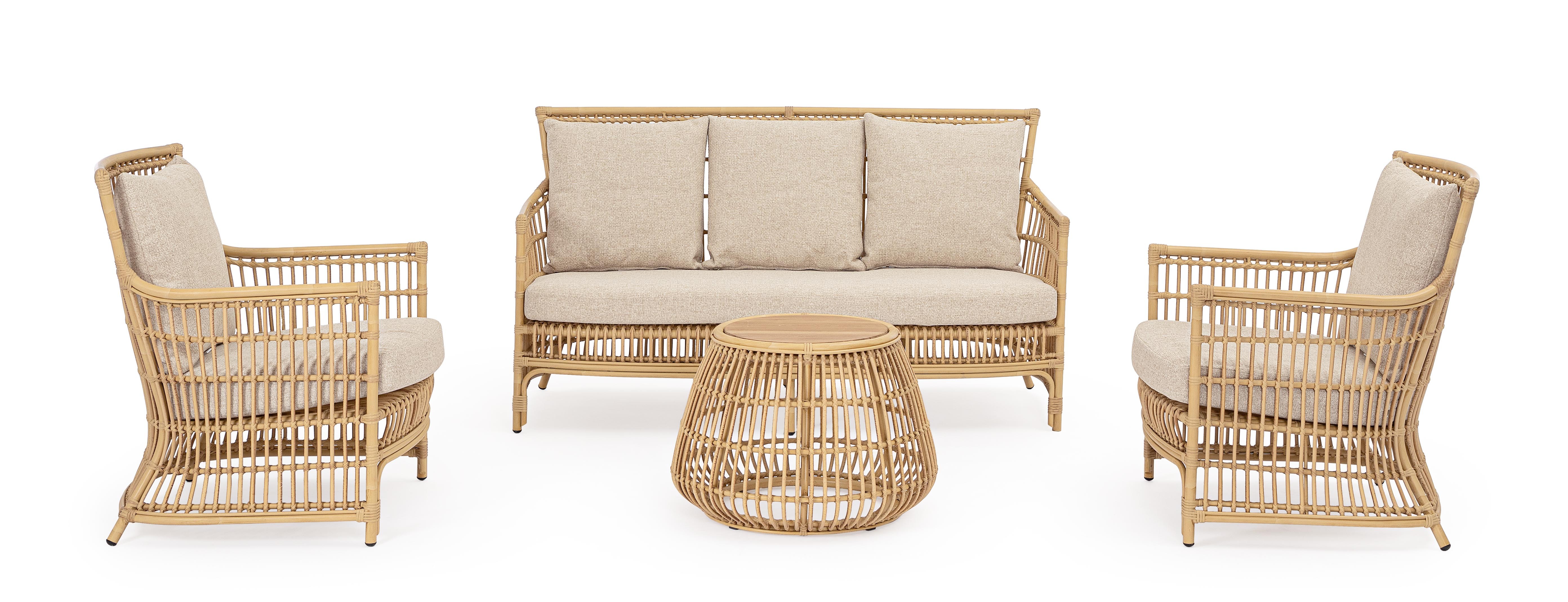 STRUTTURA IN ALLUMINIO VERNICIATO A POLVERE (POLIESTERE) CON EFFETTO RATTAN, INTRECCIO IN FIBRA SINTETICA (TONDO 10MM).CUSCINI SFODERABILI CON TESSUTO IDROREPELLENTE SUNPROOF OLEFIN (100%POLYPROPYLENE). IMBALLO SENZA CARTONE.