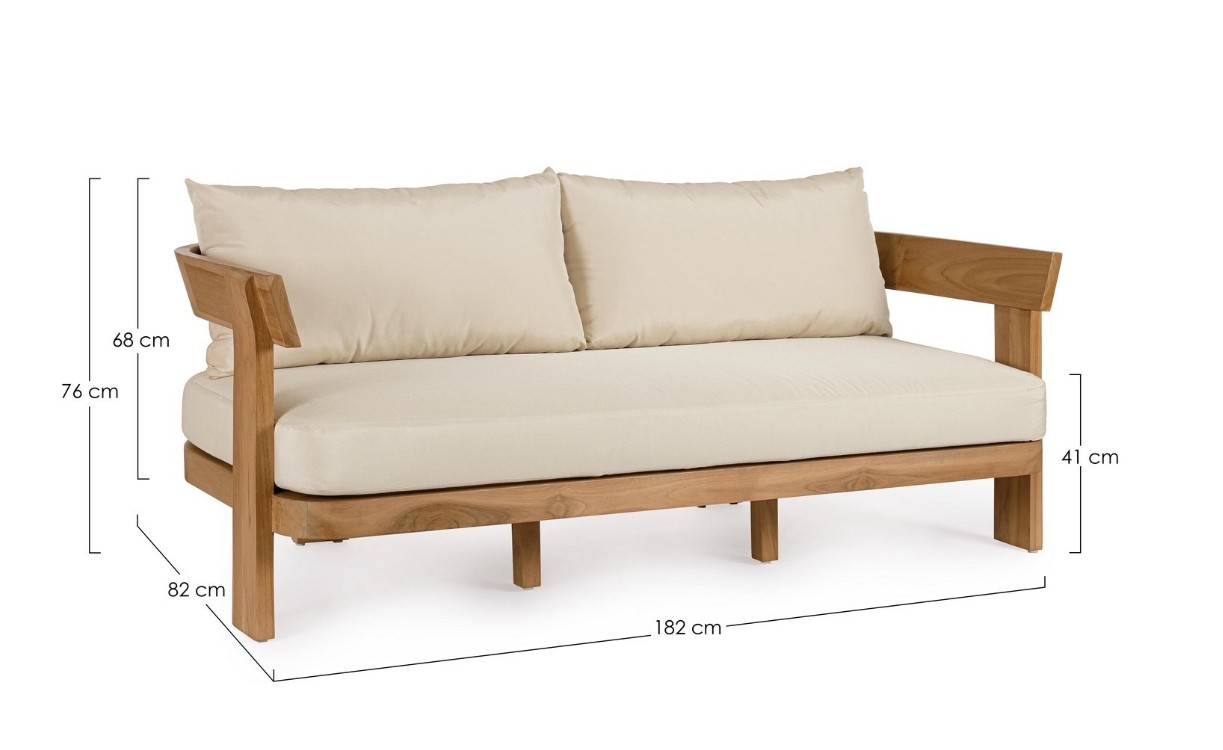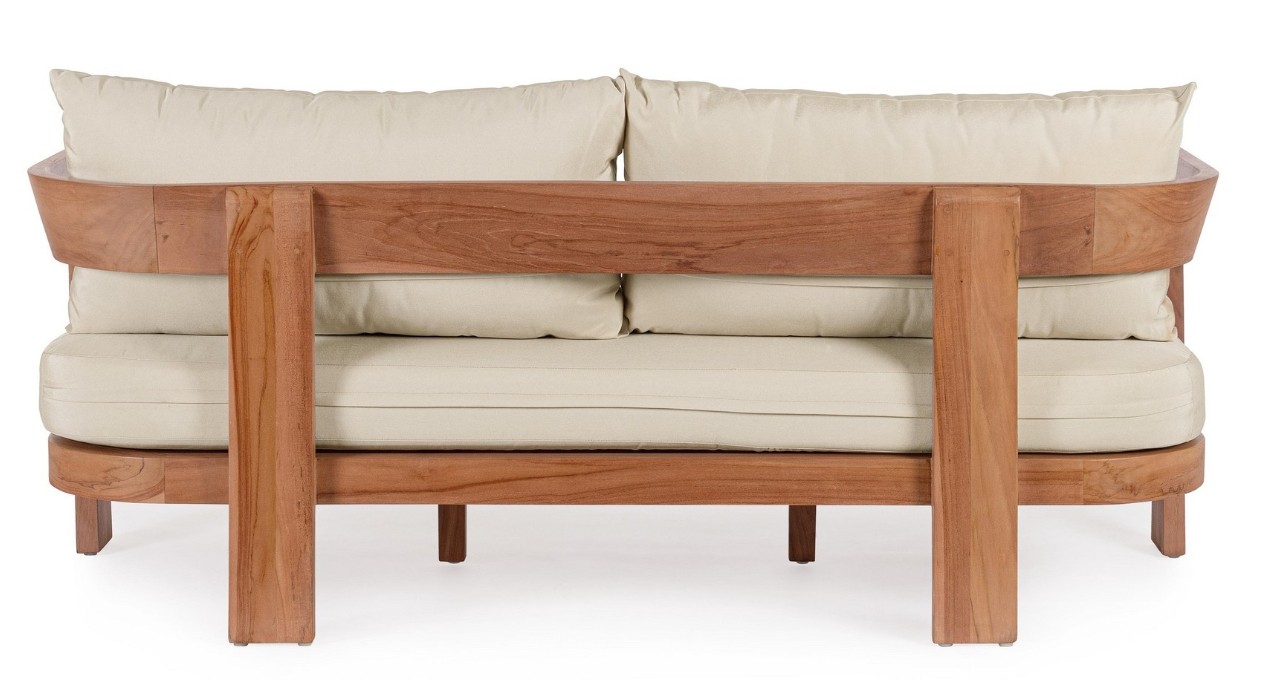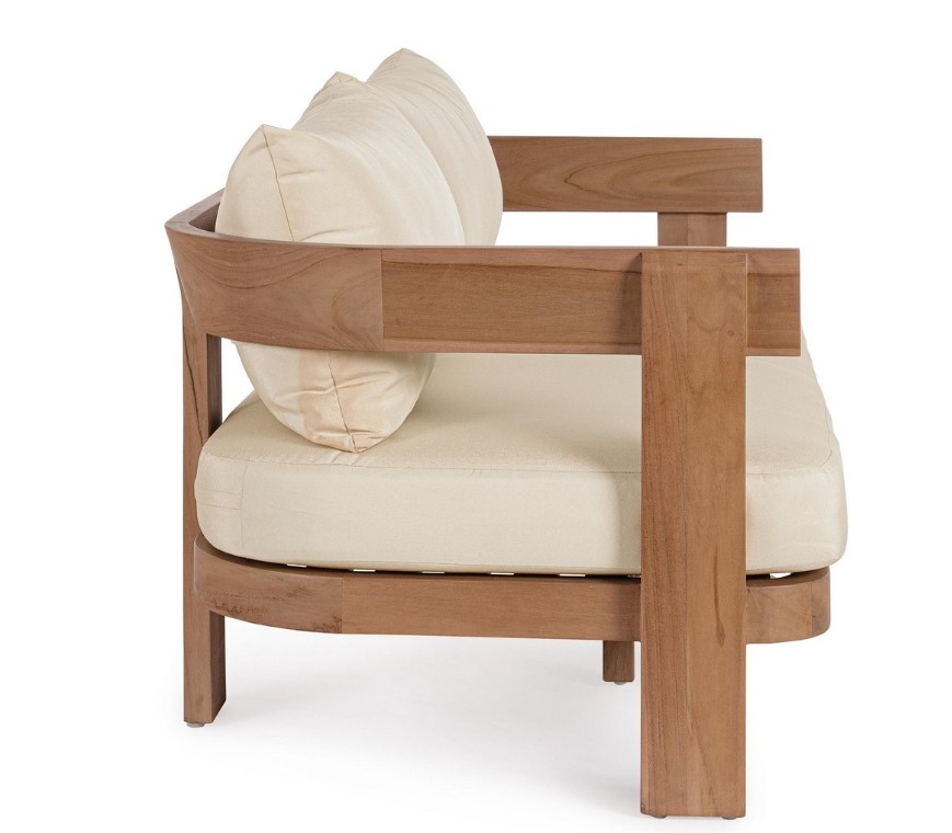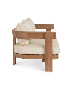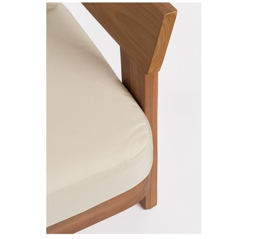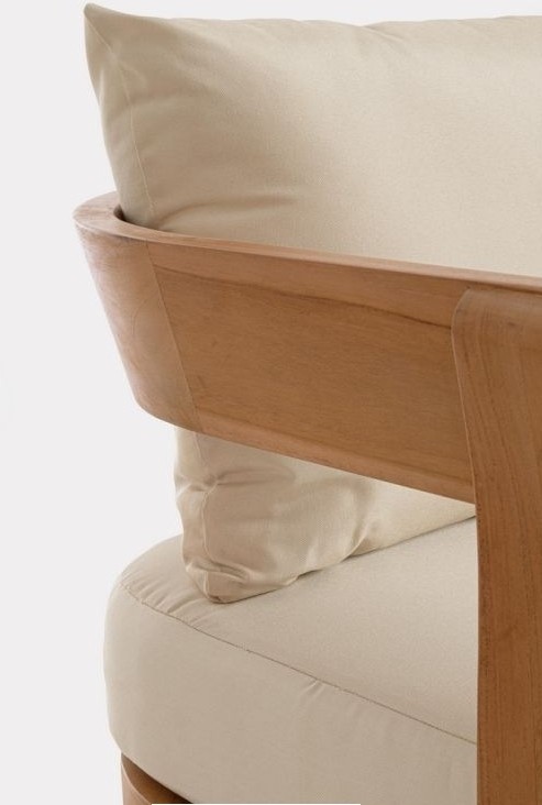 STRUTTURA IN IN TEAK - SVLK (LEGNO CERTIFICATO PROVENIENTE DA FORESTE SOSTENIBILI), FINITURA FINALE A BASE D'ACQUA. CUSCINI SFODERABILI IN TESSUTO IDROREPELLENTE SUNPROOF OLEFIN (100%POLYPROPYLENE). IL TEAK È UN LEGNO RICCO DI OLII. CON IL PASSARE DEL TEMPO, QUESTI OLII, PER UN PROCESSO NATURALE, RISALGONO IN SUPERFICIE E POSSONO MACCHIARE EVENTUALI CUSCINI A DIRETTO CONTATTO CON IL LEGNO.
