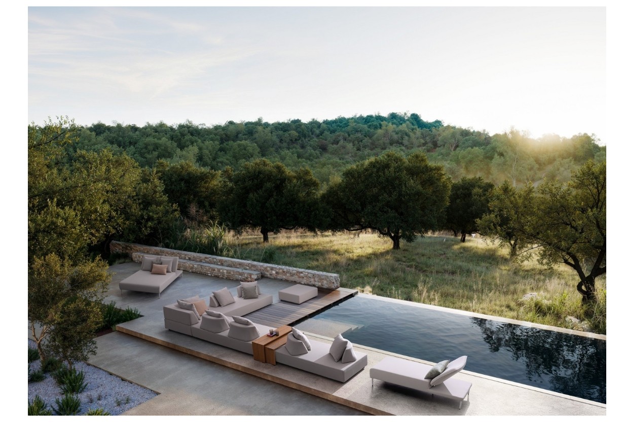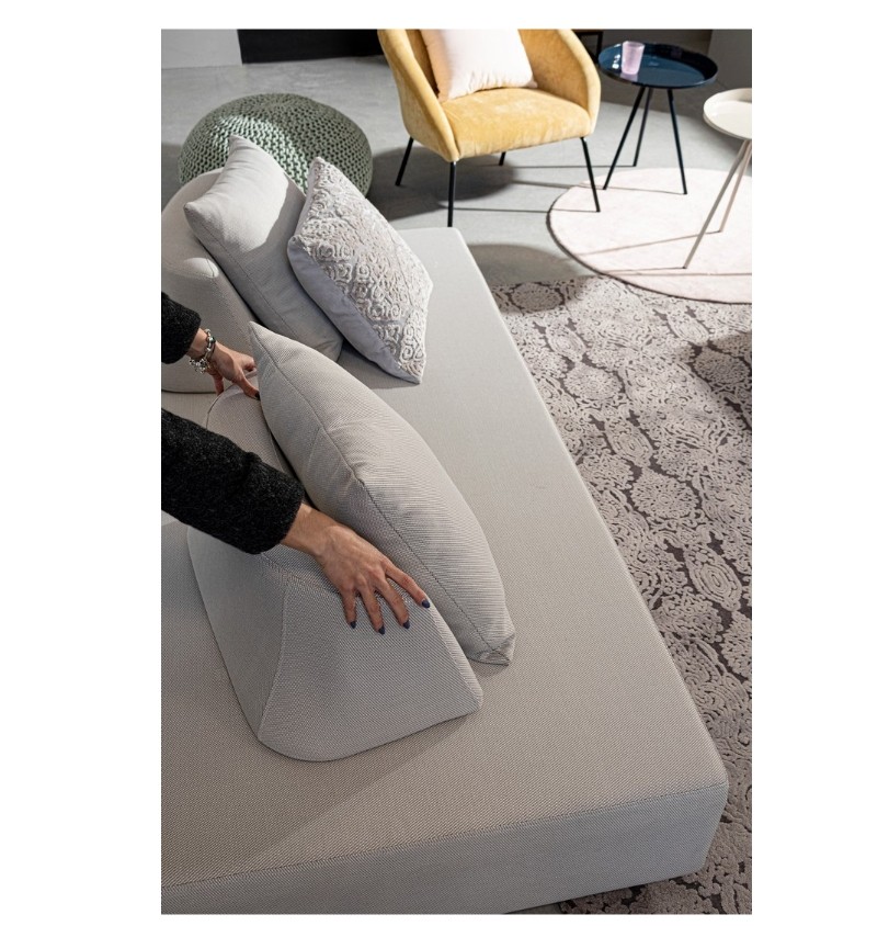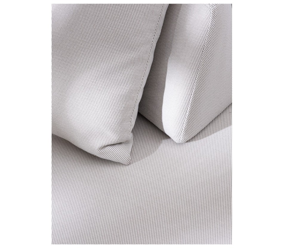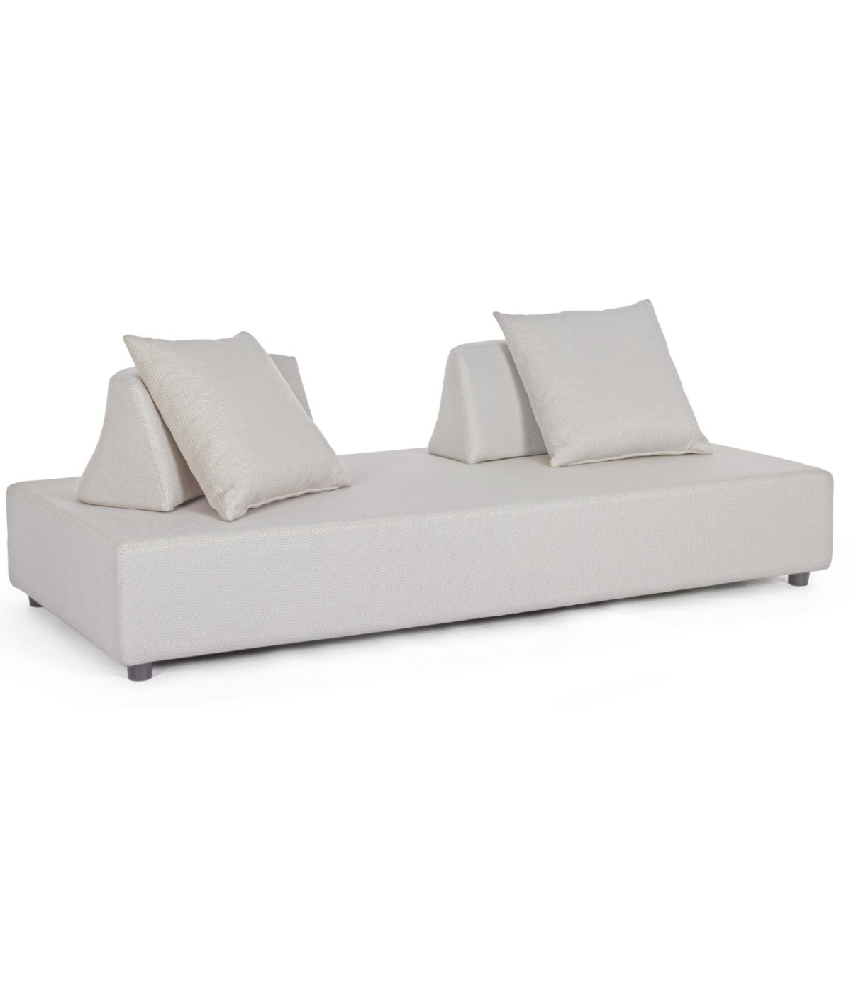 DIVANO CON STRUTTURA IN ALLUMINIO. SCHIENALI REMOVIBILI CON STRUTTURA IN ACCIAIO, GALVANIZZATA A CALDO E VERNICIATA A POLVERE (POLIESTERE). SEDUTA, SCHIENALI E CUSCINI SFODERABILI IN TESSUTO PER ESTERNO OLEFIN (100% POLIPROPILENE, 285GR/M2), IDROREPELLENTE E RESISTENTE AI RAGGI UV (GRADO 7), IMPERMEABILIZZATO INTERNAMENTE CON RIVESTIMENTO IN TESSUTO (POLIURETANO). IMBOTTITURA IN SCHIUMA POLIURETANICA, DENSITA' SEDUTA 38KG/M3, SCHIENALI 20KG/M3. ARTICOLO COMPOSTO DA: N °1 DIVANO, N°2 SCHIENALI MEZZALUNA, N°2 CUSCINETTI.