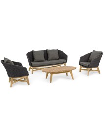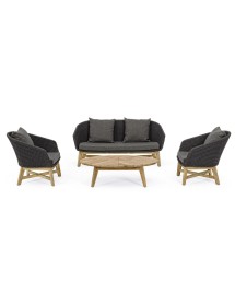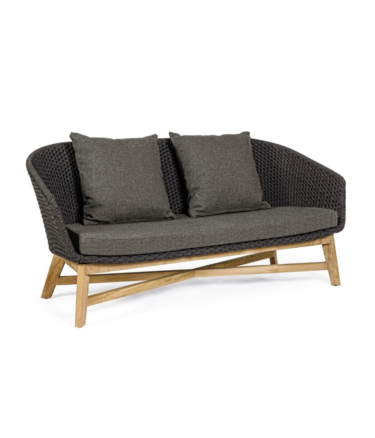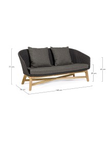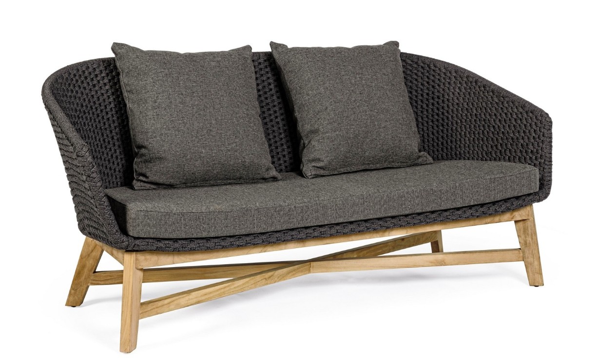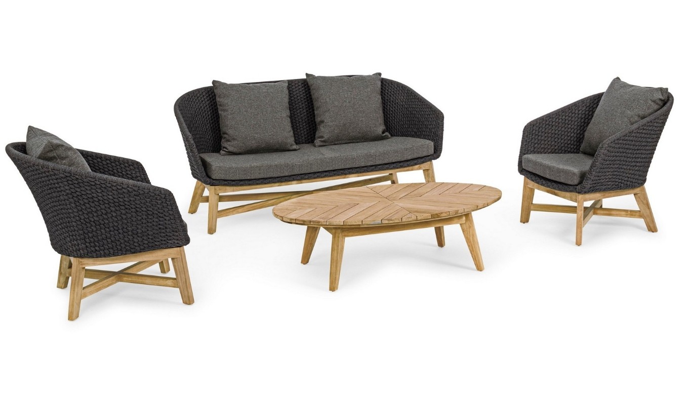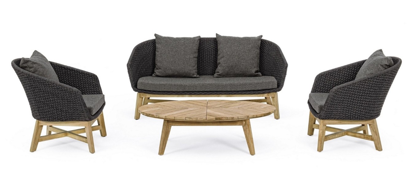 SEDUTA CON STRUTTURA IN ALLUMINIO VERNICIATA A POLVERE (POLIESTERE). INTRECCIO IN CORDA OLEFIN (100% POLIPROPILENE). CUSCINO SEDUTA E SCHIENALE SFODERABILE IN TESSUTO IDROREPELLENTE SUNPROOF OLEFIN (100% POLIPROPILENE). GAMBE IN TEAK - SVLK (LEGNO CERTIFICATO PROVENIENTE DA FORESTE SOSTENIBILI). VITERIA IN ACCIAIO GALVANIZZATO. GAMBE DA ASSEMBLARE. ATTENZIONE: PRIMA DI PROCEDERE AL MONTAGGIO, ASSICURARSI CHE LA NUMERAZIONE SEDUTA-GAMBE COINCIDA.