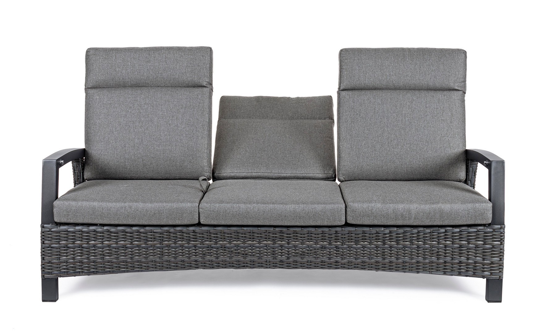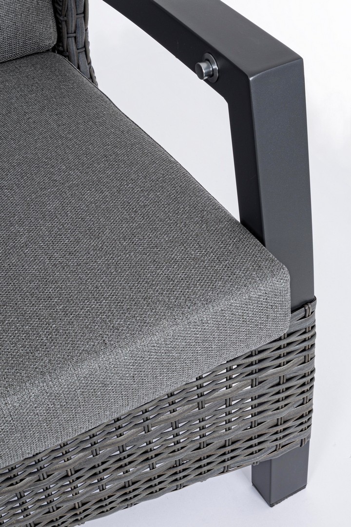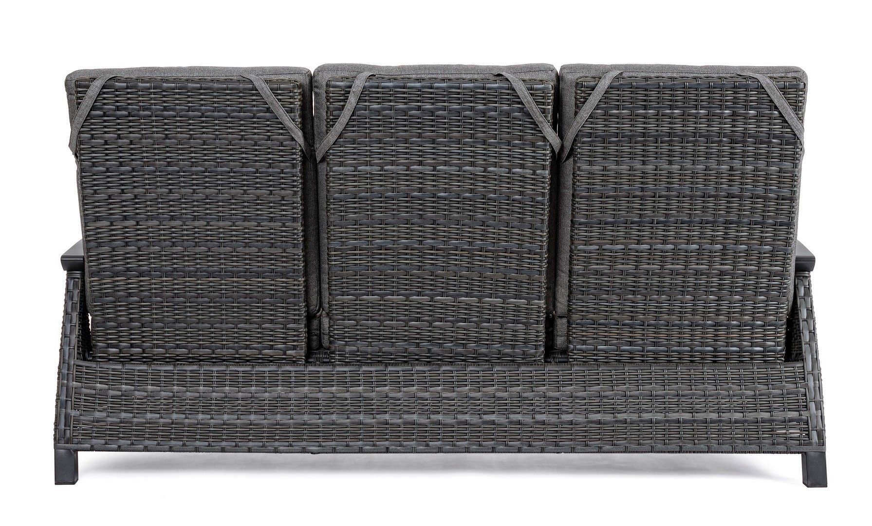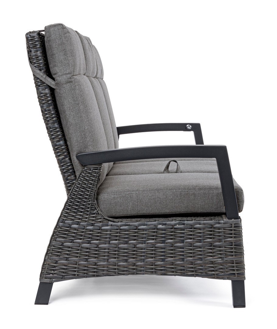 STRUTTURA IN ALLUMINIO, VERNICIATA A POLVERE (POLIESTERE), INTRECCIO IN FIBRA SINTETICA (MULTI-MISURA). SCHIENALE RECLINABILE IN LIBERA POSIZIONE. CUSCINI SFODERABILI CON TESSUTO OLEFIN (100% POLIPROPILENE). VITERIA IN ACCIAIO INOSSIDABILE. SCHIENALE DA ASSEMBLARE.