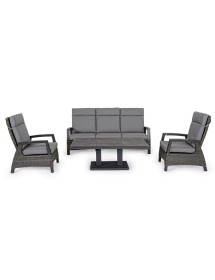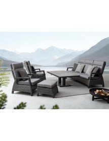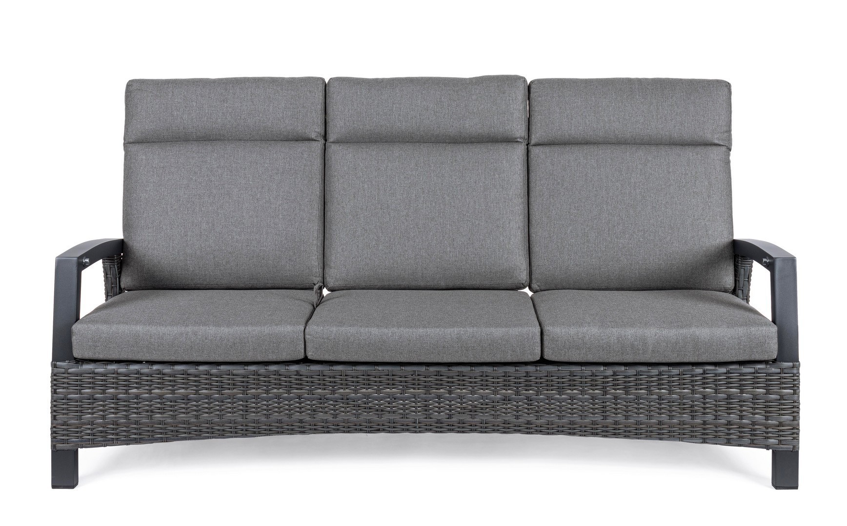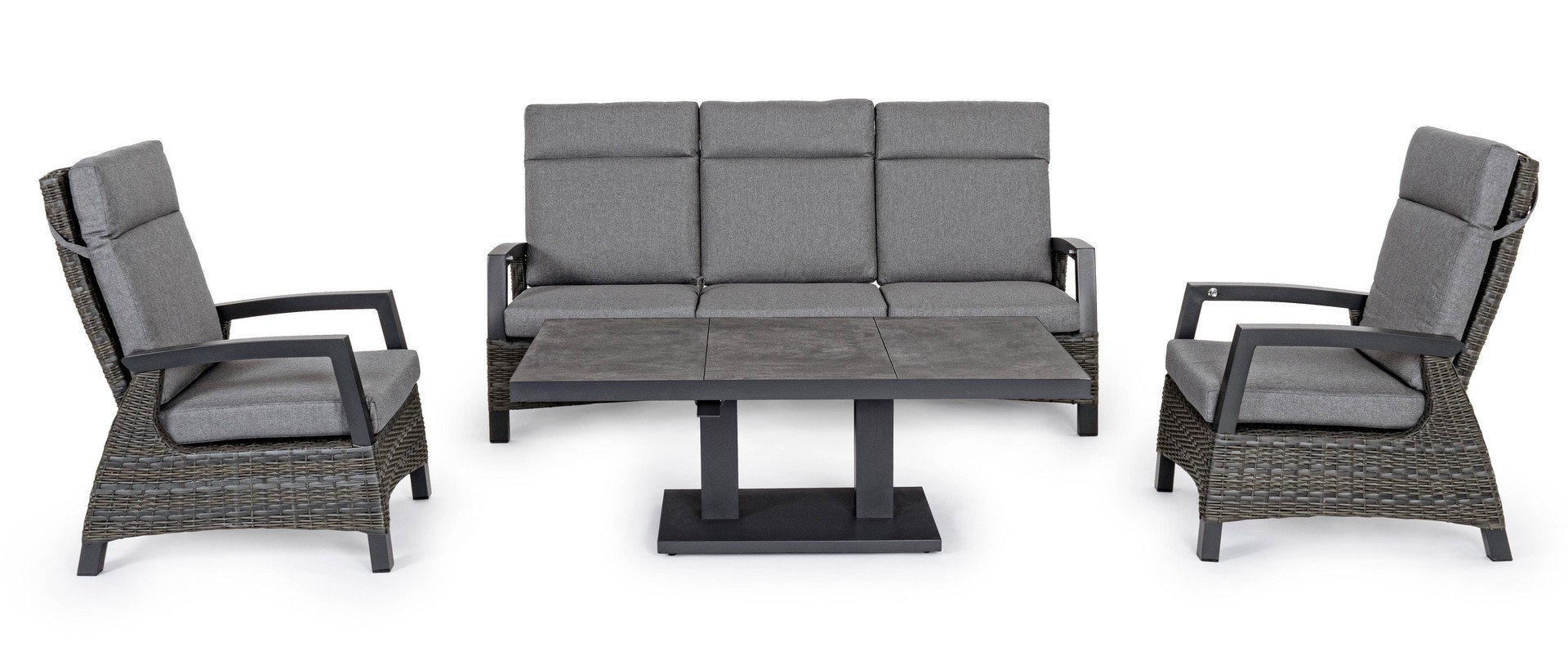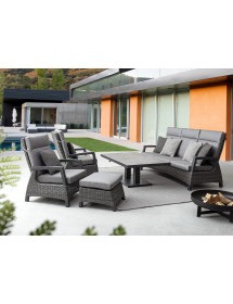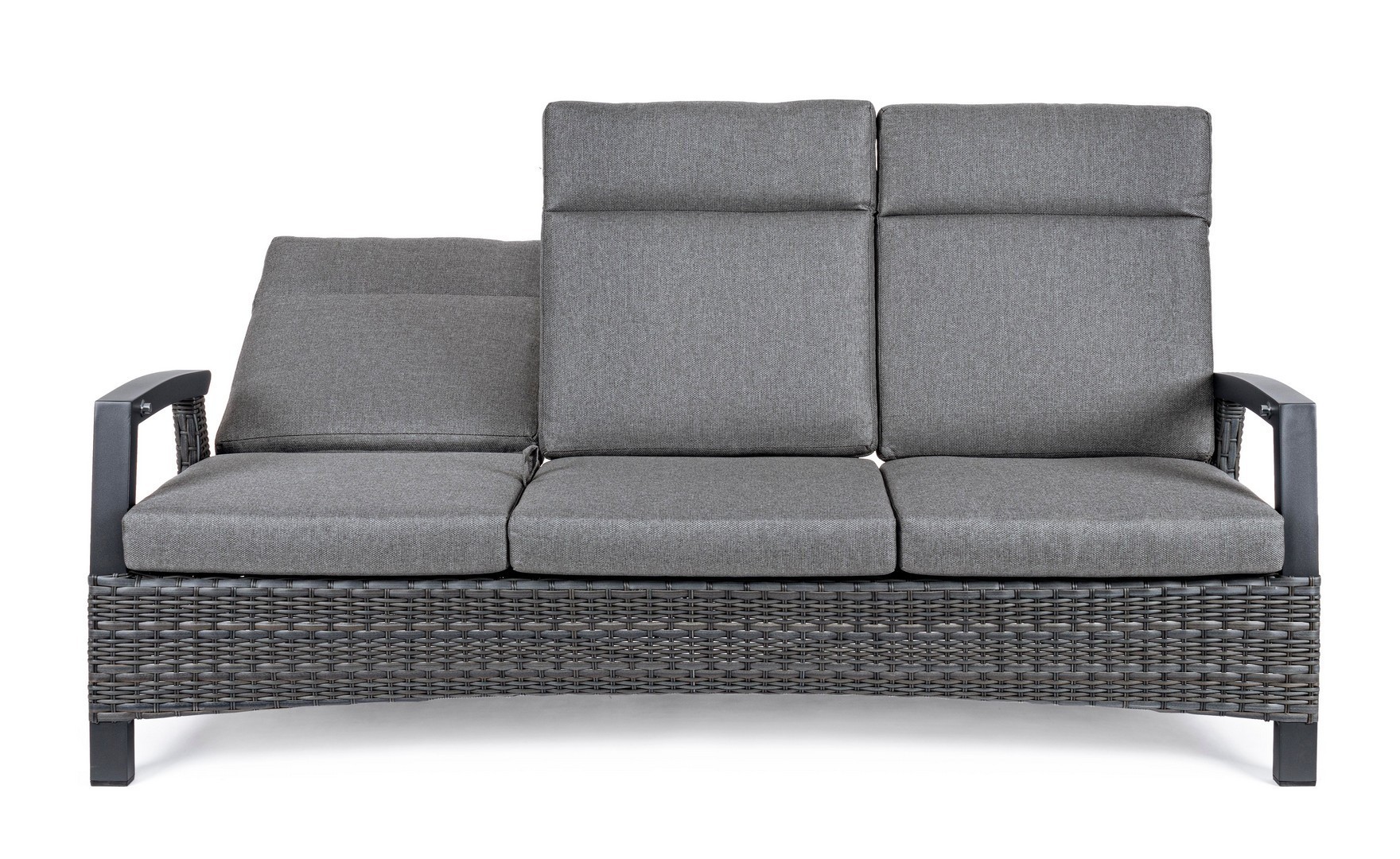 STRUTTURA IN ALLUMINIO, VERNICIATA A POLVERE (POLIESTERE), INTRECCIO IN FIBRA SINTETICA (MULTI-MISURA). SCHIENALE RECLINABILE IN LIBERA POSIZIONE. CUSCINI SFODERABILI CON TESSUTO OLEFIN (100% POLIPROPILENE). VITERIA IN ACCIAIO INOSSIDABILE. SCHIENALE DA ASSEMBLARE.