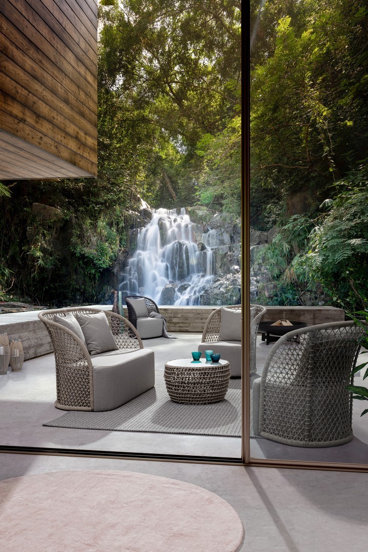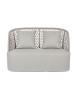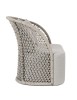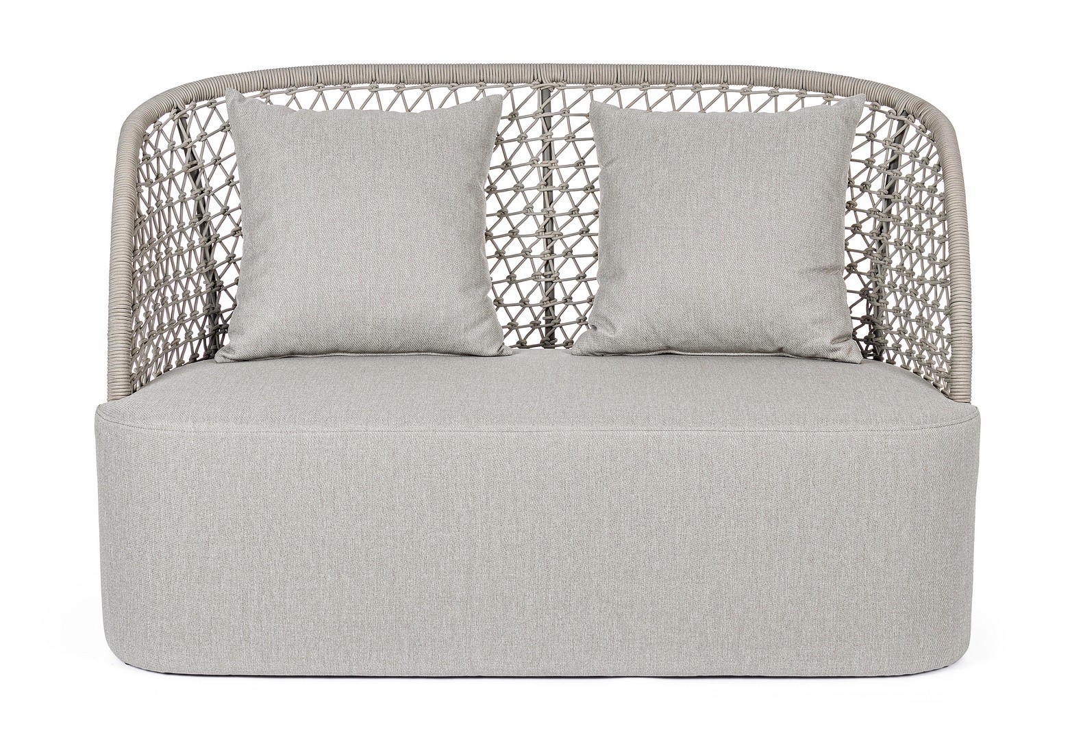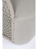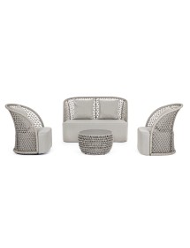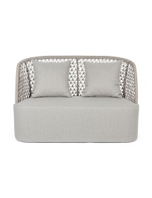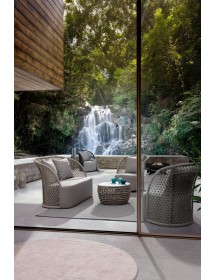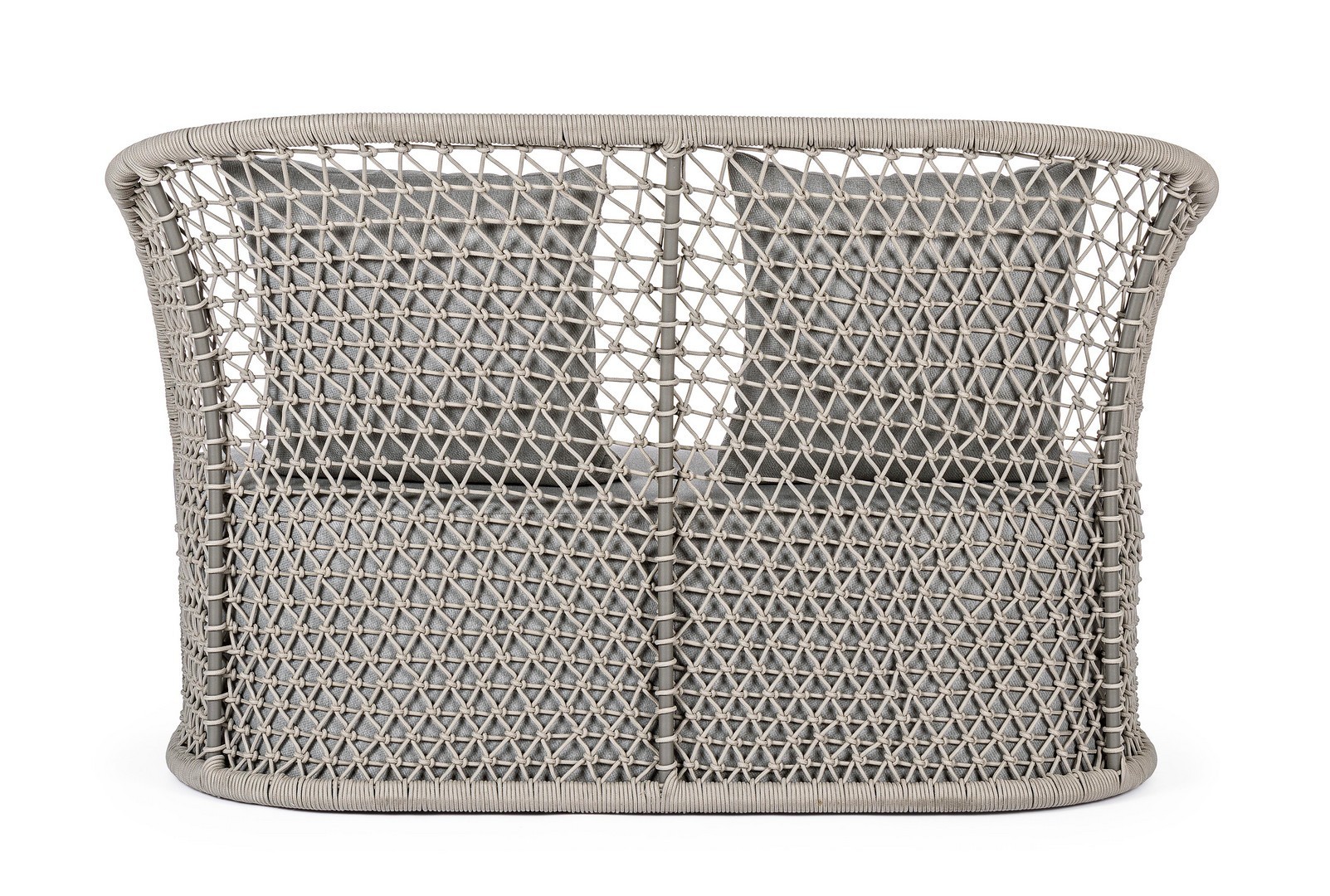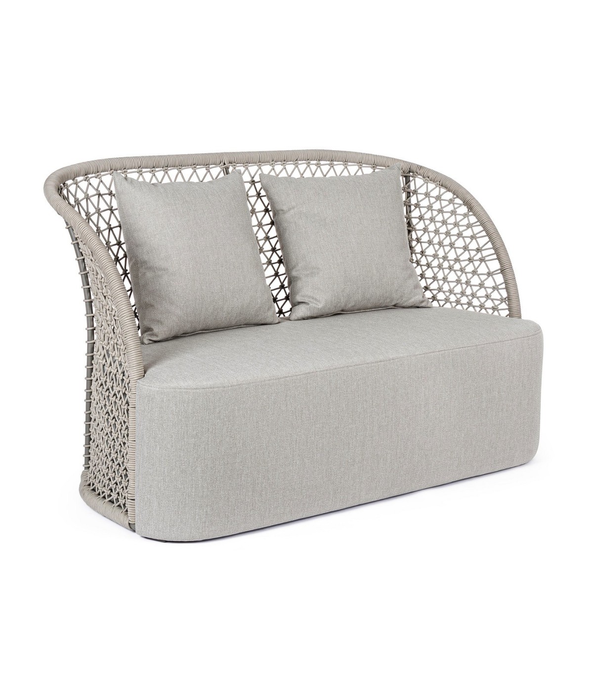 STRUTTURA IN ALLUMINIO VERNICIATO A POLVERE (POLIESTERE), INTRECCIO CON CORDA IN OLEFIN (100% POLIPROPILENE). SEDUTA CON IMBOTTITURA IMPERMEABILIZZATA, RIVESTIMENTO NON SFODERABILE CON TESSUTO PER ESTERNO IN OLEFIN (100% POLIPROPILENE, 285G/M2),IDROREPELLENTE E RESISTENTE AI RAGGI UV (GRADO 7). CUSCINO SCHIENALE SFODERABILE CON TESSUTO OLEFIN.