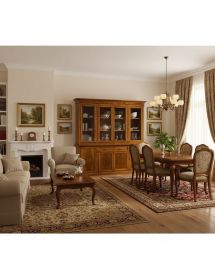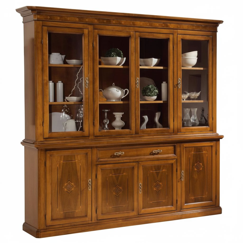 • MOBILI 2G - CRISTALLIERA IN LEGNO 8 PORTE 1 CASSETTO CON INTARSIO FINITURA BASSANO MISURE L.220 P.49 H.222 VISTA FRONTALE