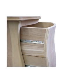 Cassettiera sagomata costruita in legno con gambe a sciabola. Cassettiera dotata di quattro cassetti e un cassetto a ribalta per riporre all'occorrenza biancheria intima e oggetti. Trovano facilmente posto nella zona notte proteggendo con i suoi cassetti il suo contenuto all'interno. Unica nel suo genere con la sua particolare laccatura in contrasto con i pomoli dando un tocco a un' atmosfera dallo stile unico e originale .